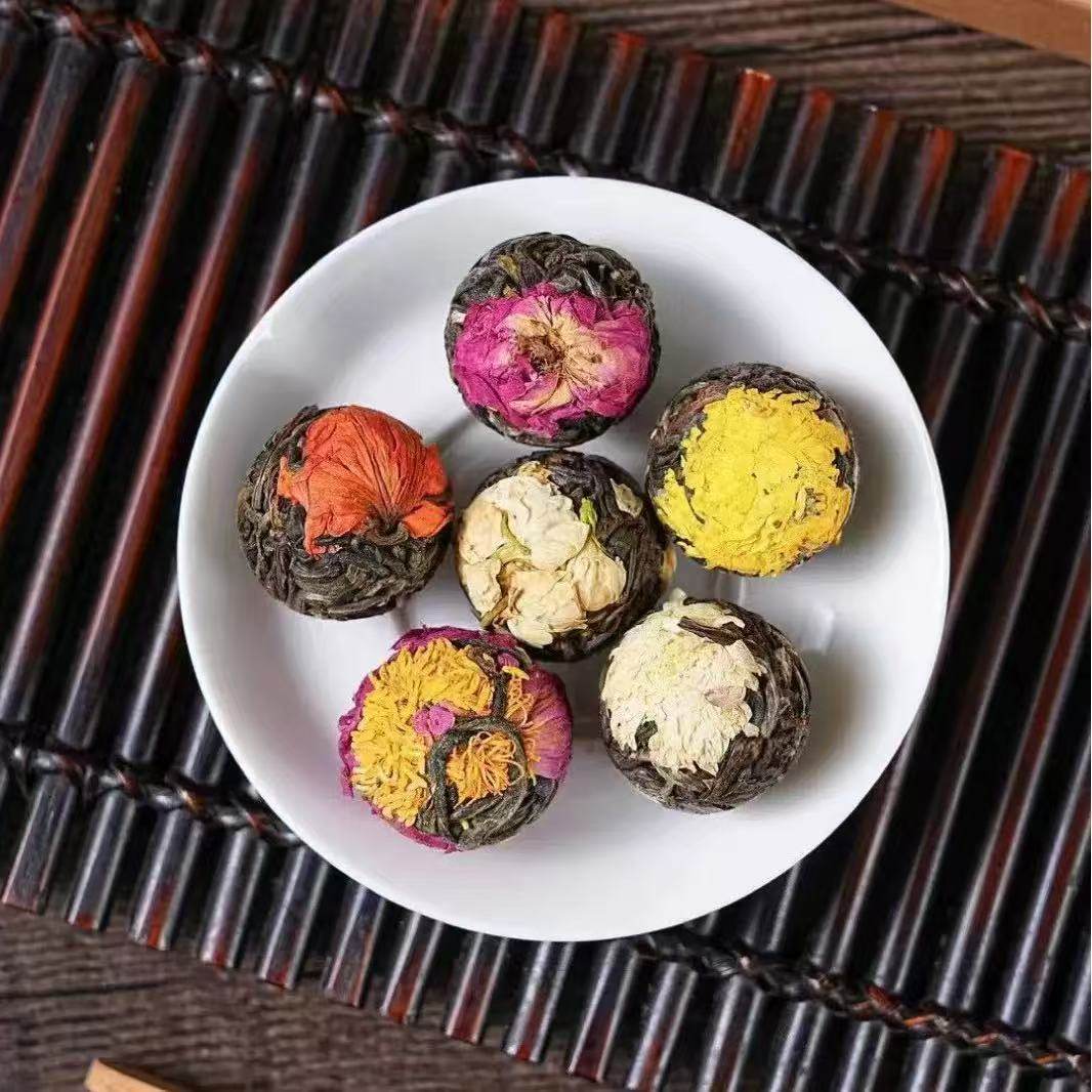 批发云南普洱茶玫瑰茉莉花茶普洱生茶龙珠 牡丹花球6味18颗礼盒装