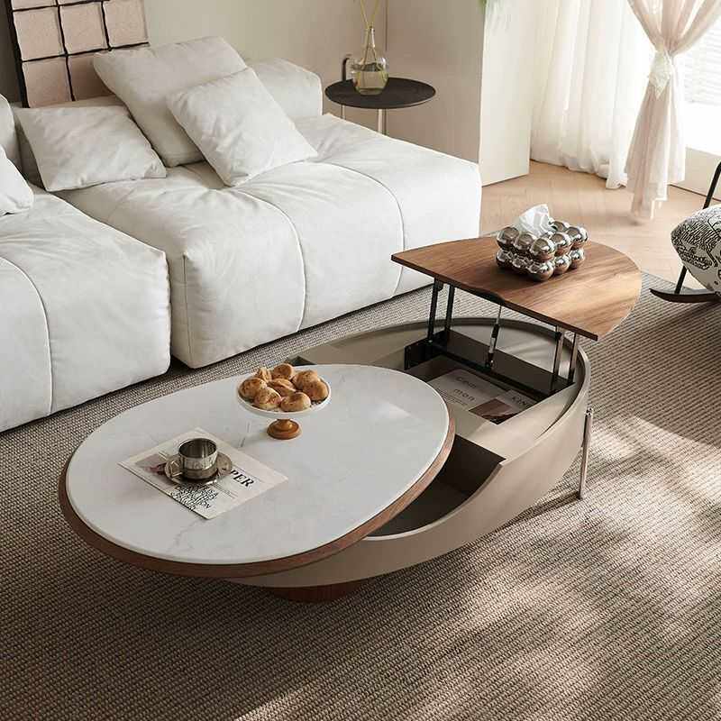 新款客厅新款好茶几可升降意式小户型马鞍家用高级现代微晶石组合