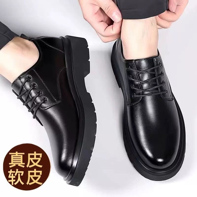 男士皮鞋男款真皮2025新款商务正装潮流黑色软底透气百搭休闲鞋子