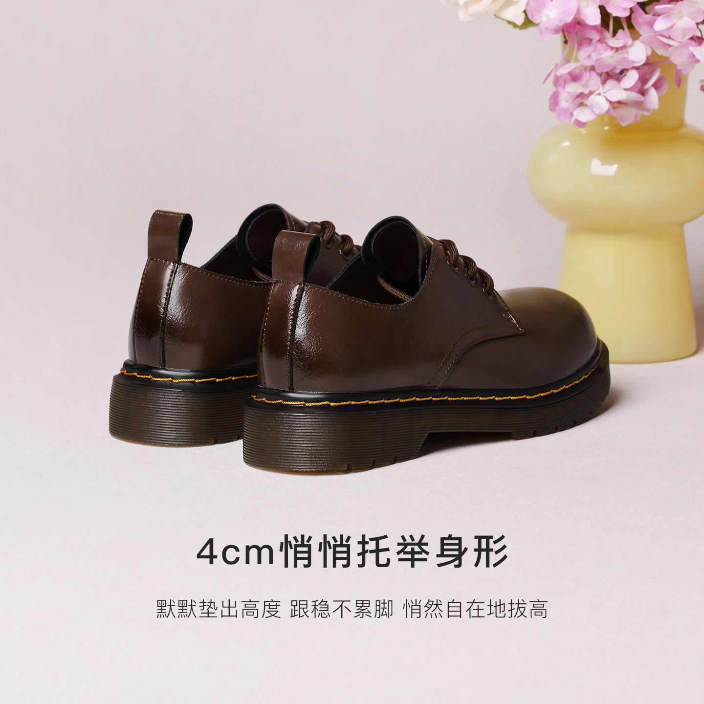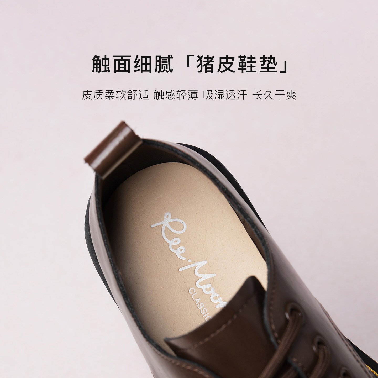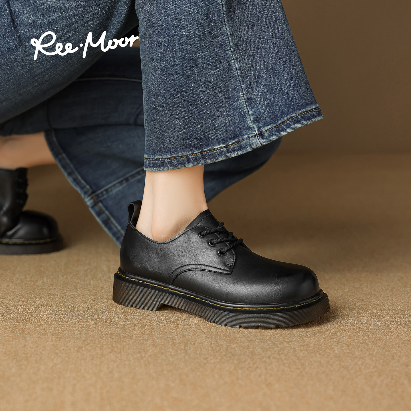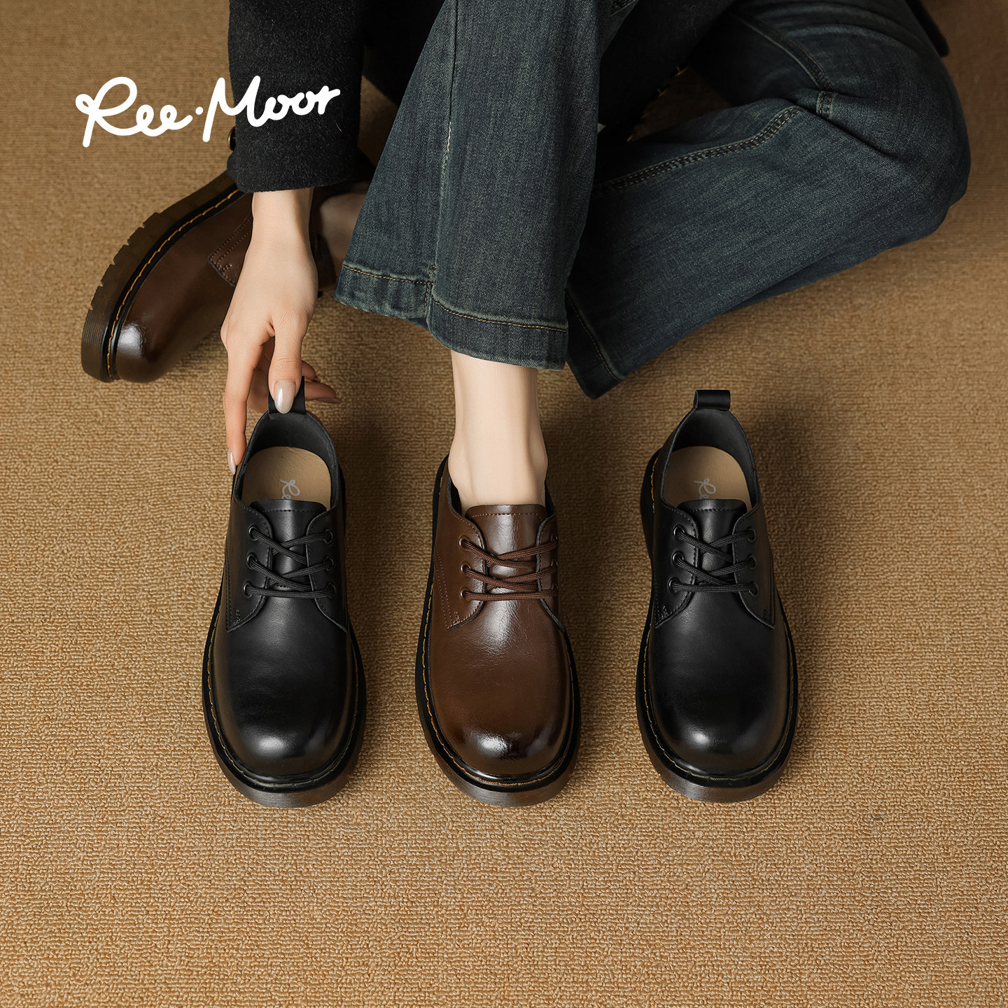 REEMOOR睿慕2025冬季圆头深口单鞋厚底通勤小皮鞋英伦风乐福鞋女