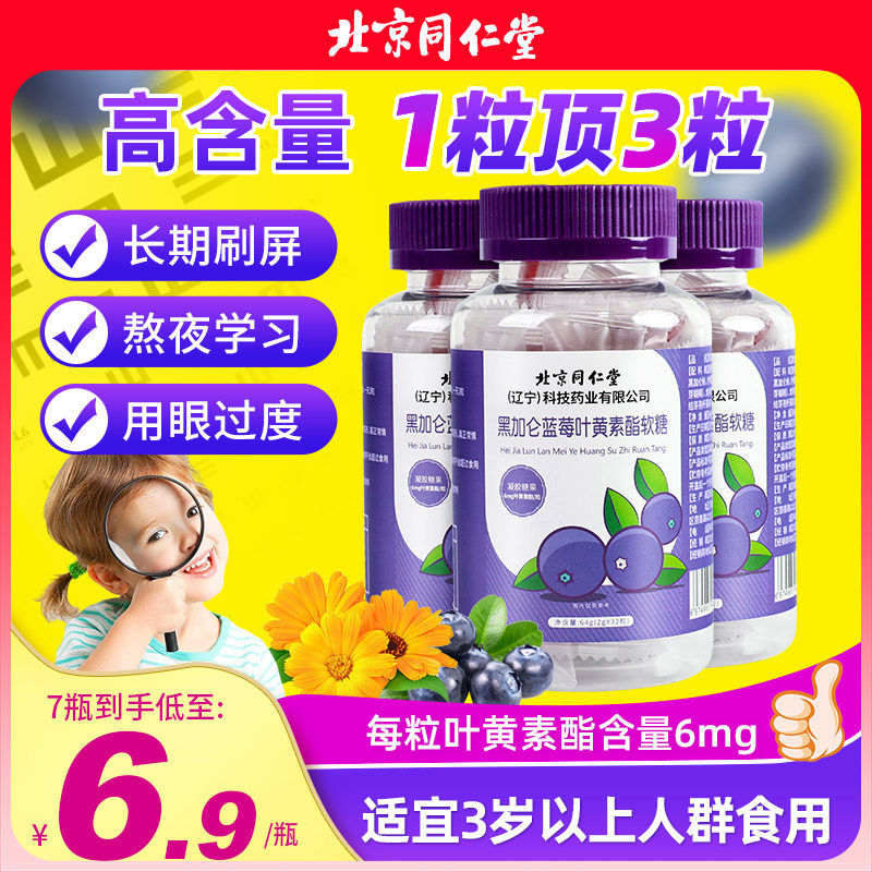 北京同仁堂蓝莓叶黄素软糖儿童青少年护眼片官方正品旗舰店成人非
