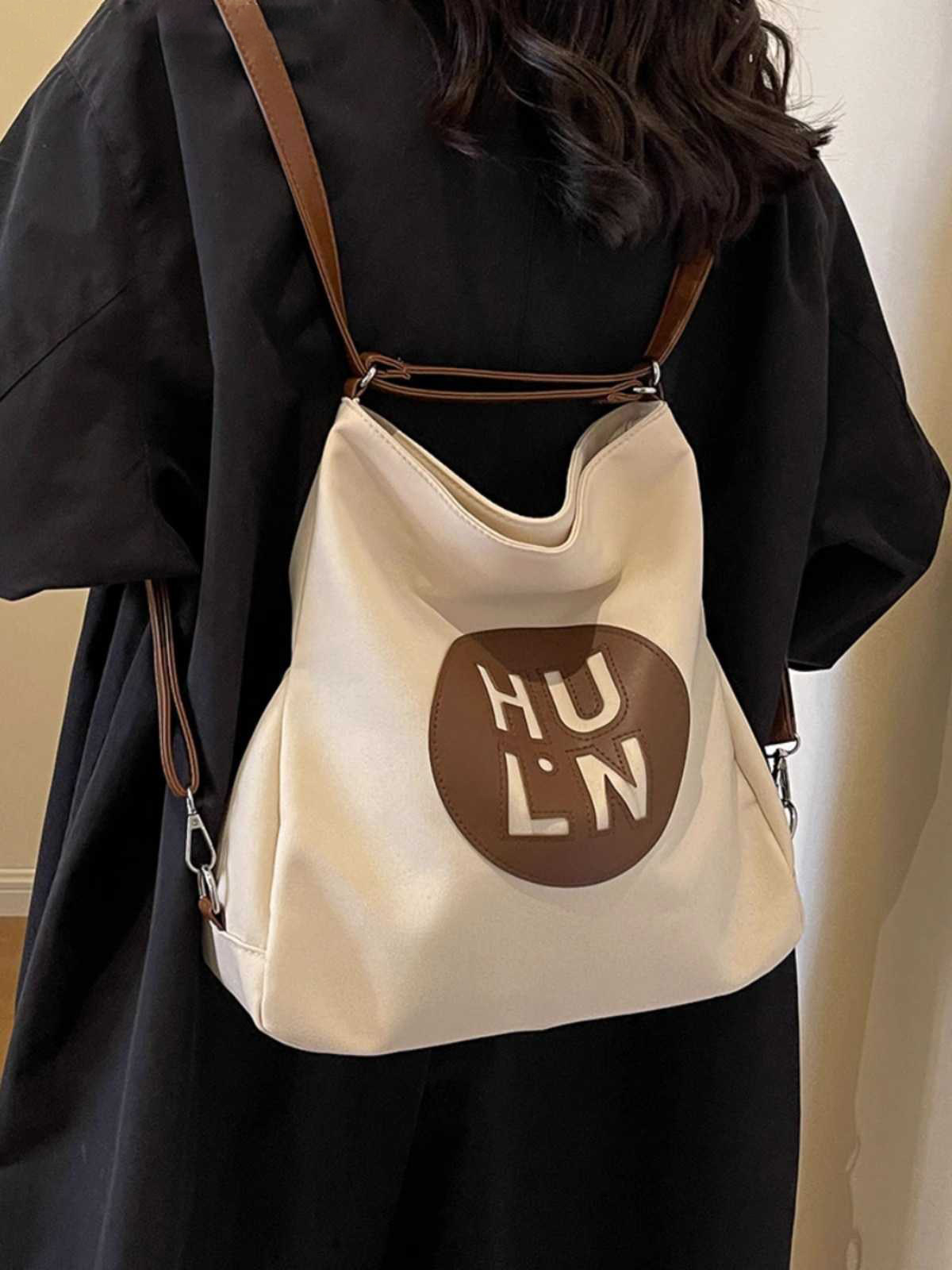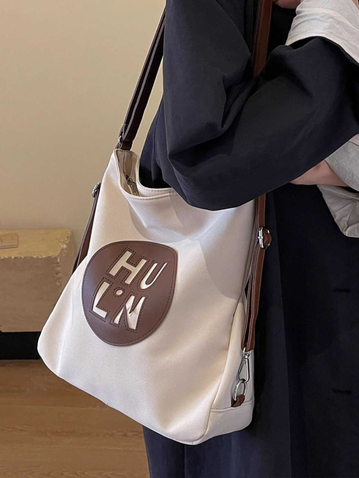 金玉鸟帆布包女新款时尚大容量多用双肩包学生上课通勤斜挎托特包