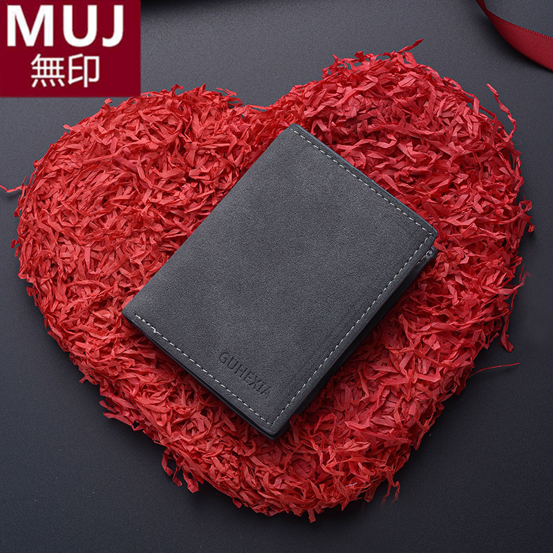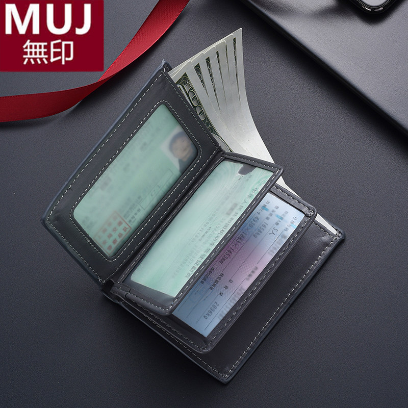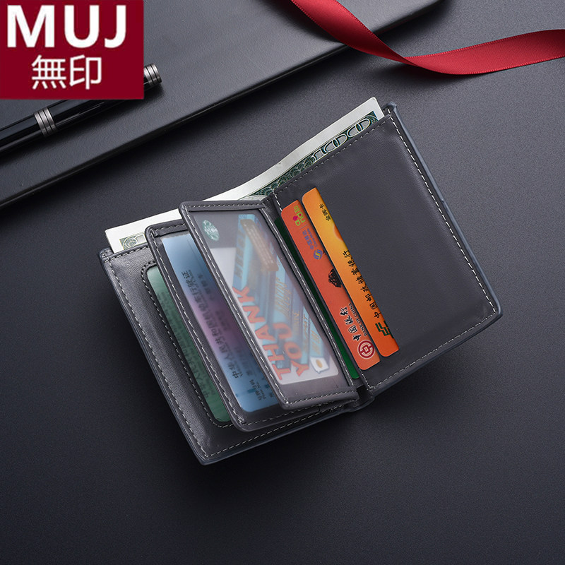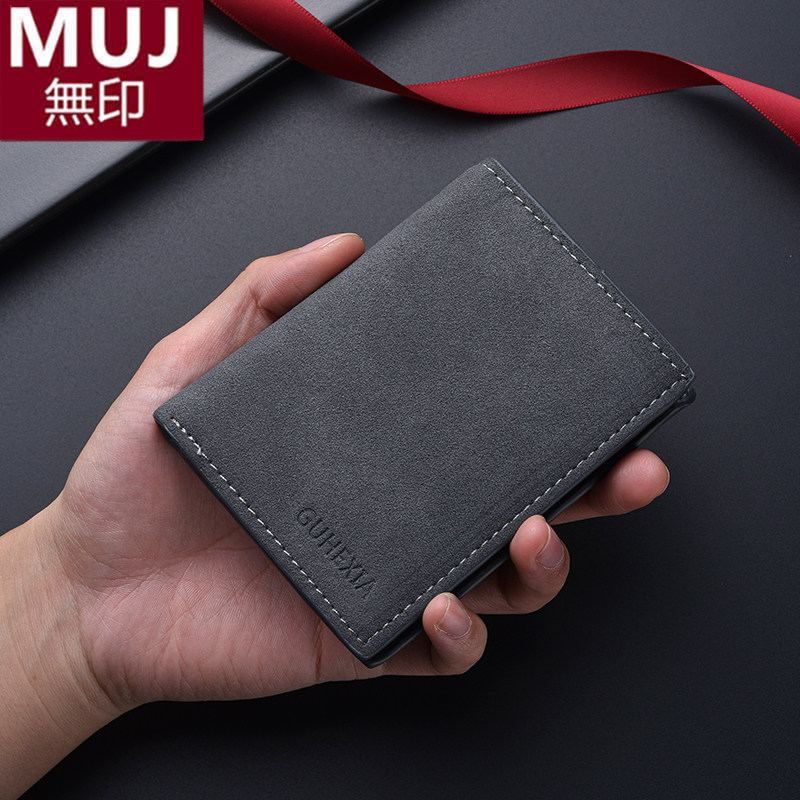 無印MUJ男士翻毛皮零钱包便携卡包防消磁多卡位驾驶证件卡片卡套