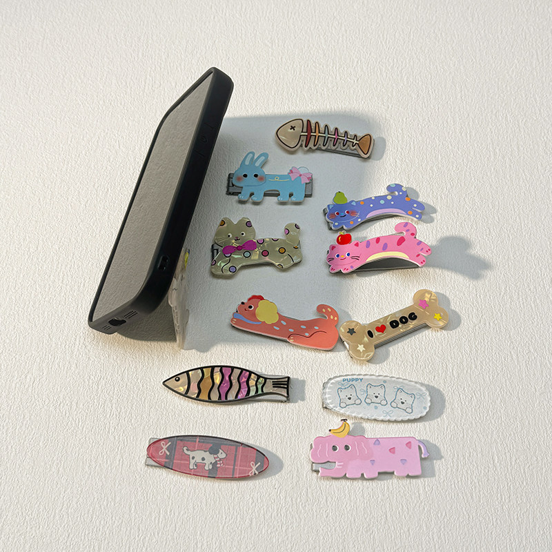 可爱狗狗猫咪咸鱼折叠隐形金属支架粘贴式壳支架便携式可站立