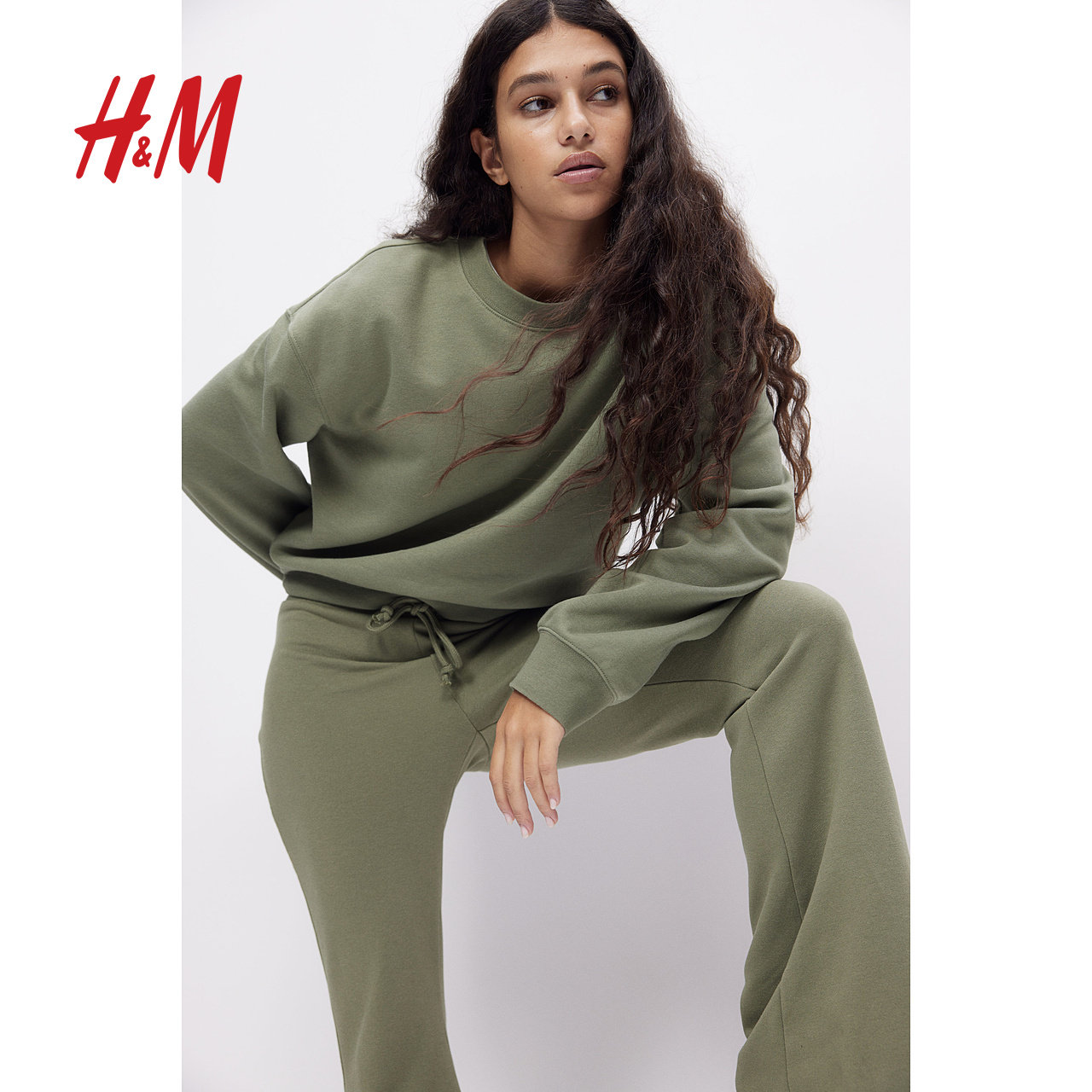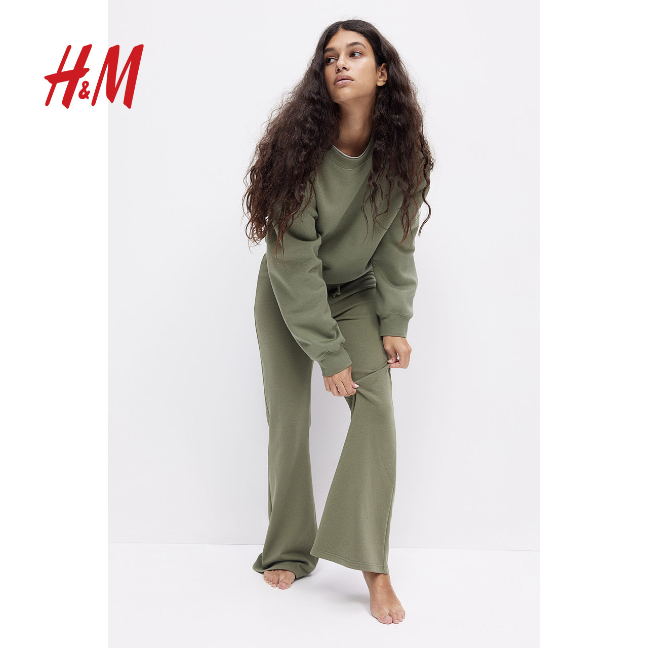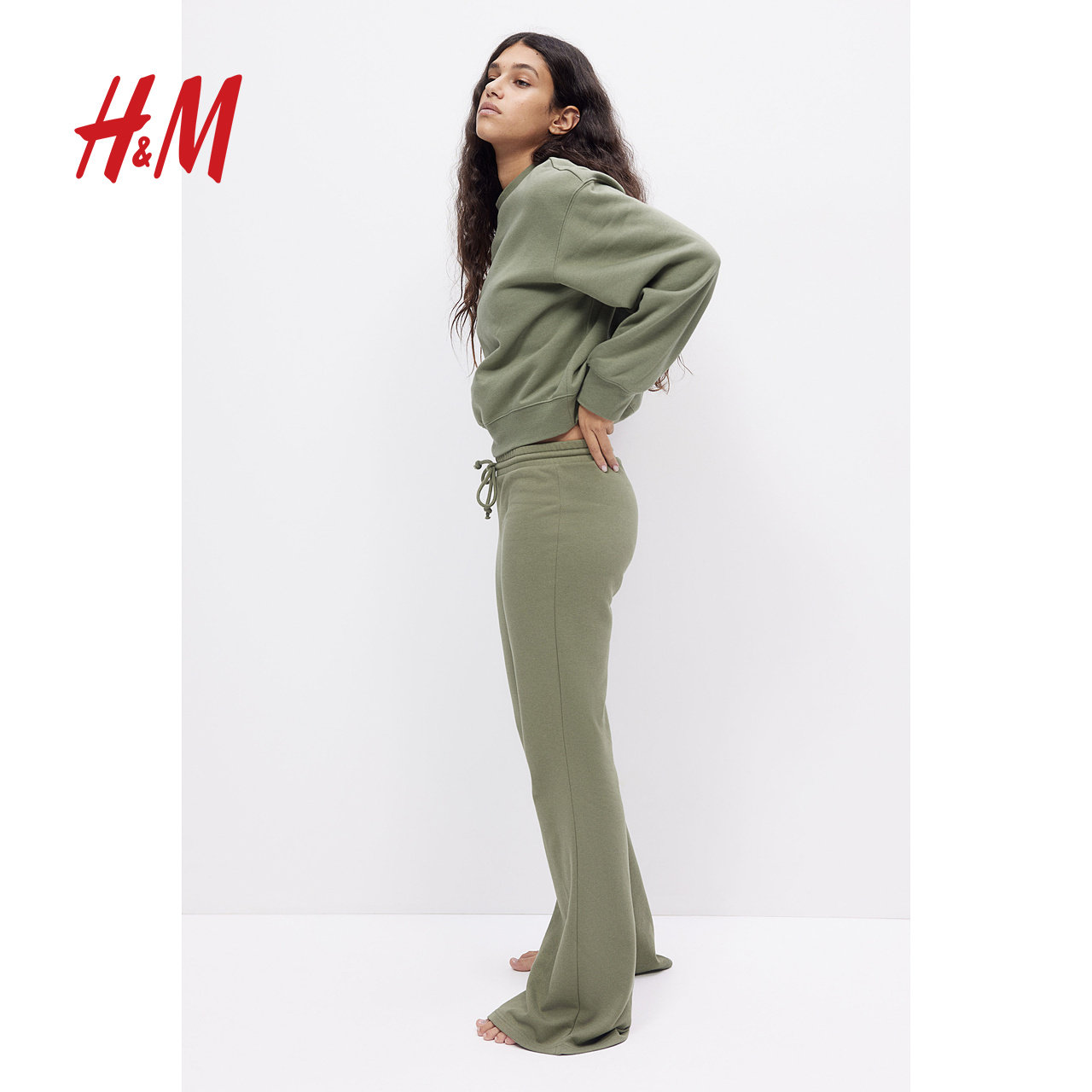 HM女装裤子春季休闲时尚微喇低腰修身运动长裤1261223
