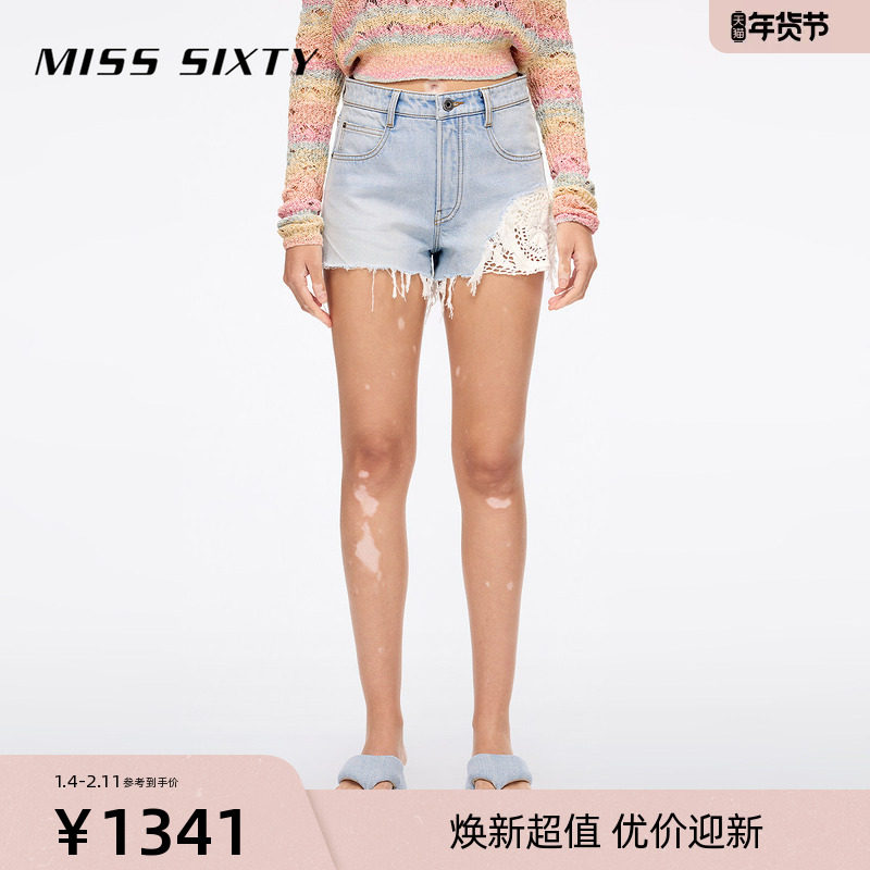 Miss Sixty2025夏季新款牛仔短裤女高腰显瘦破洞钩花波西米亚风