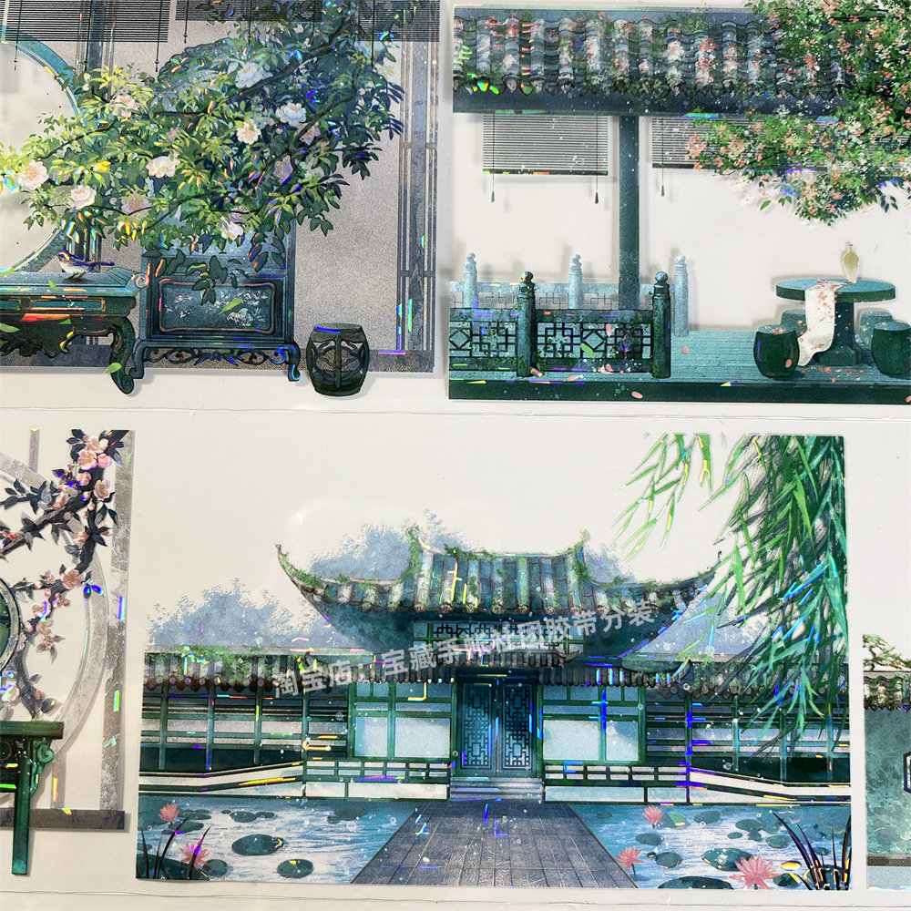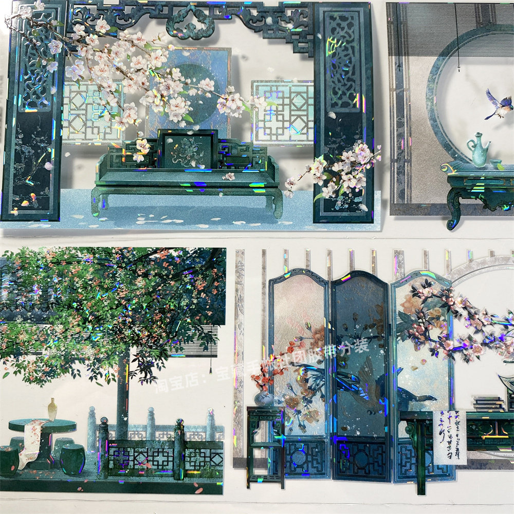 手帐分装胶带a280叶雨风庭李富贵屏风屋古风PET素材账手机壳贴纸