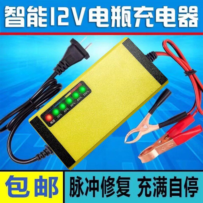 升级版智能12V踏板摩托车电瓶充电器12/20AH蓄电池修复充电机干水