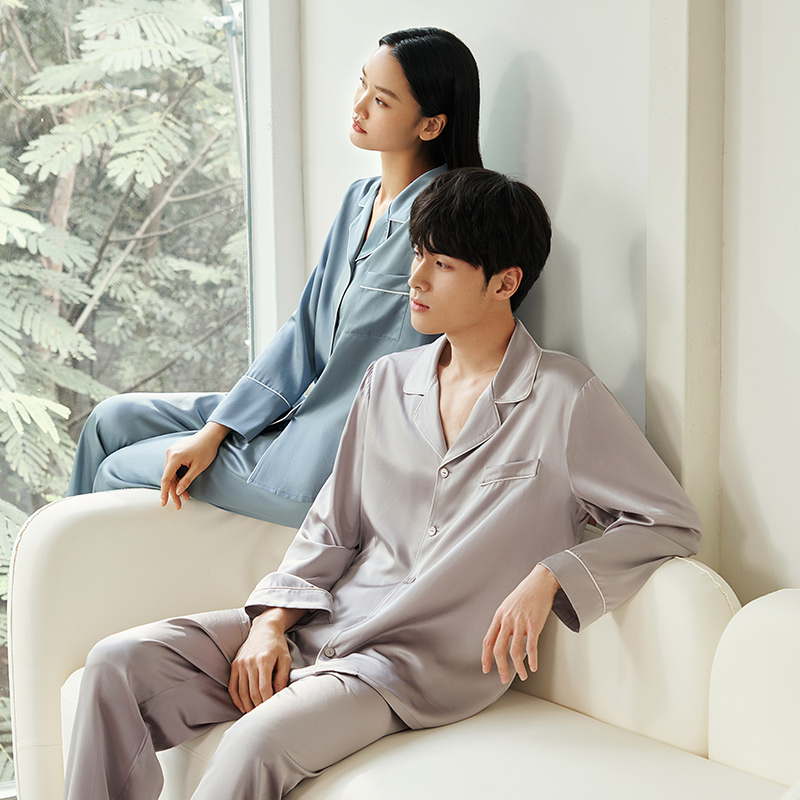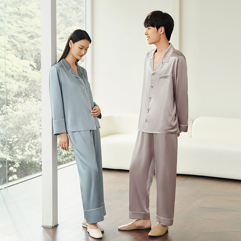 金三塔重磅22mm真丝睡衣情侣居家厚实100%桑蚕丝可外穿衣裤套礼物