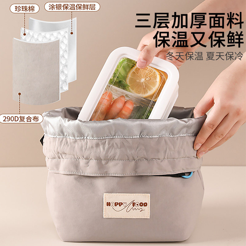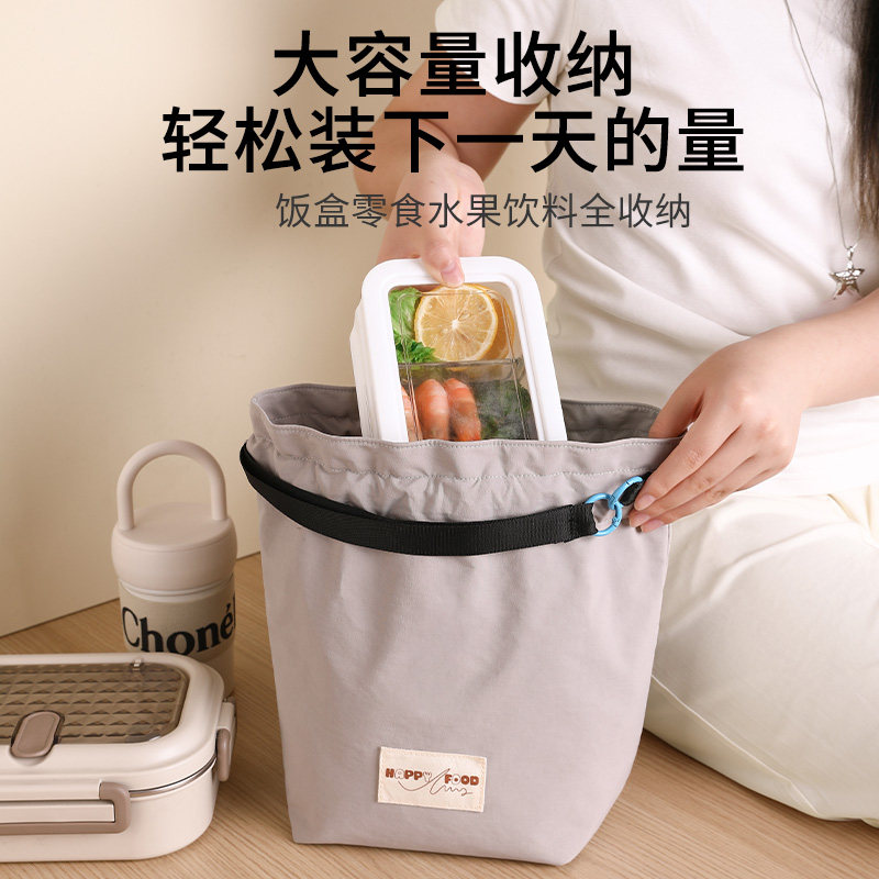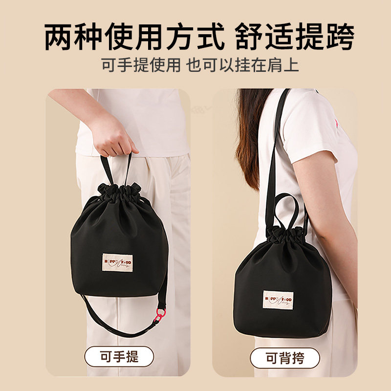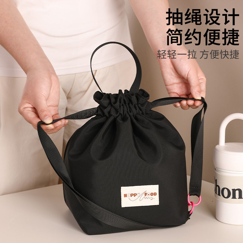 饭盒手提袋上班族通勤带饭的新款时尚防水包包保温便当包抽绳防油