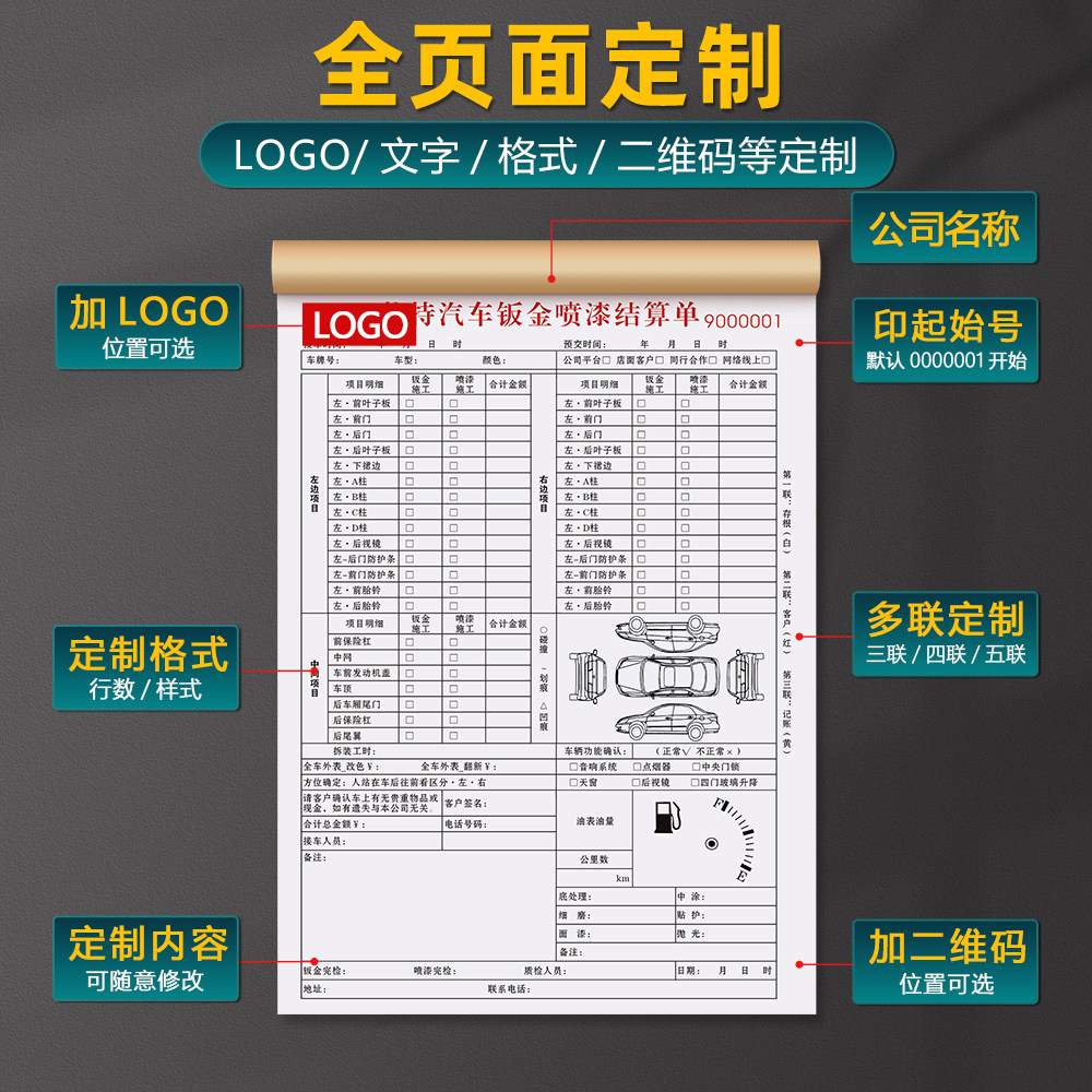 【汽车钣金喷漆专用单据】钣喷油漆施工单定制修理厂结算报价表修车店车辆维修快修接车收据美容派工服务清单