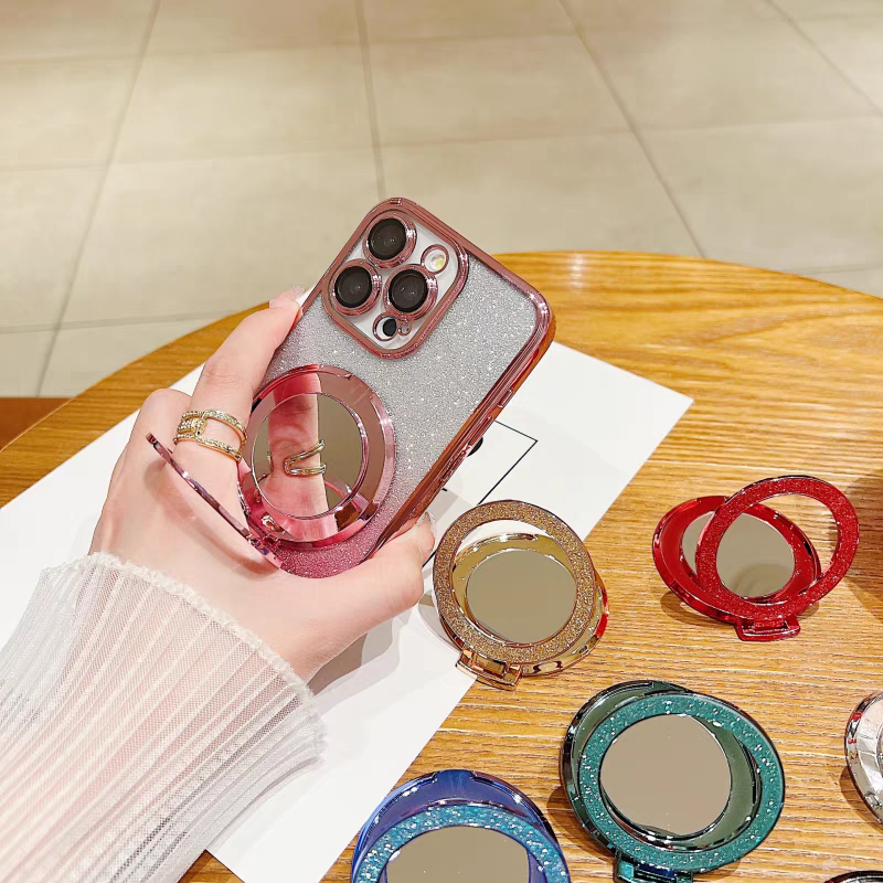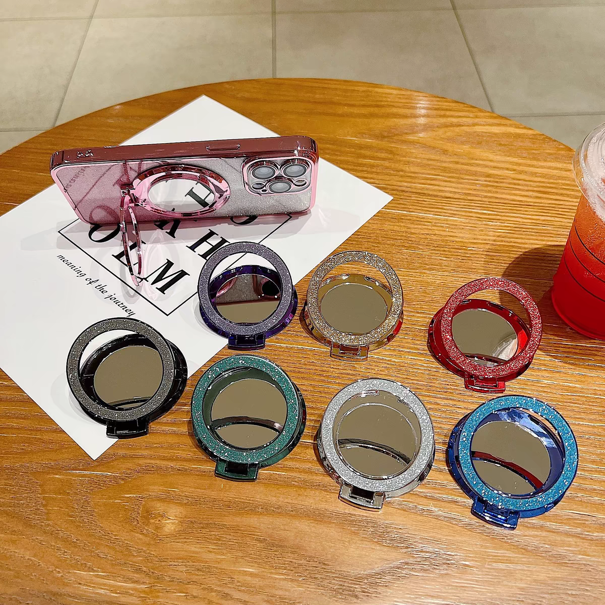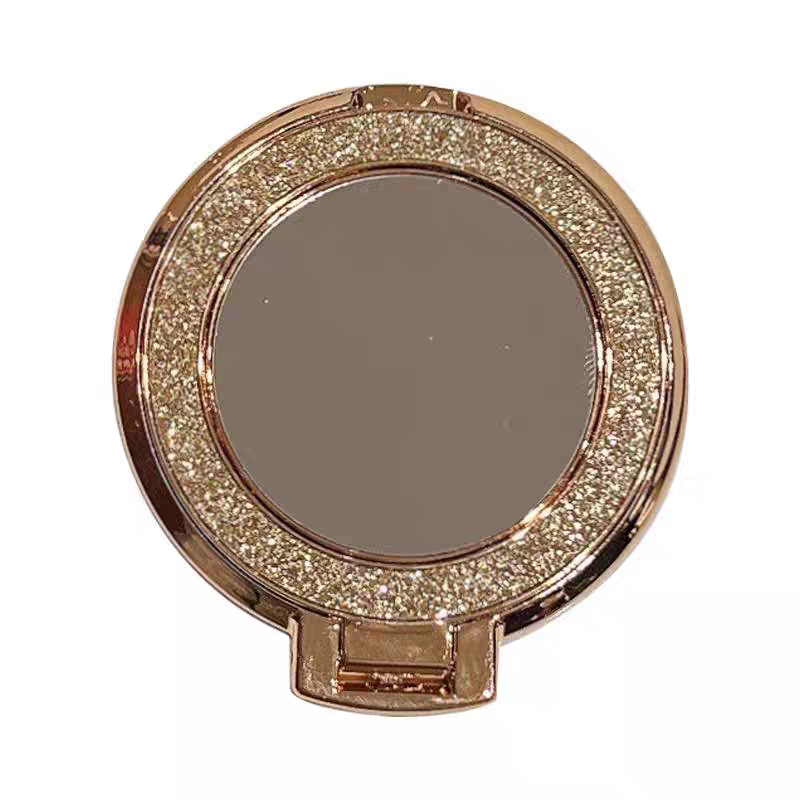 新款折叠化妆镜手机支架指环扣粘贴式多功能闪粉超薄设计桌面支撑