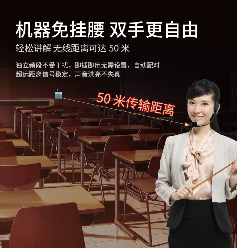 UHF无线麦克风U段接收器教学导游舞台音箱话筒喊话扩音器头戴耳麦