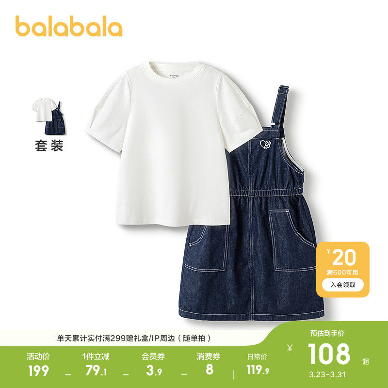 巴拉巴拉女童裙子儿童连衣裙夏装大童牛仔背带裙套装纯棉时尚洋气