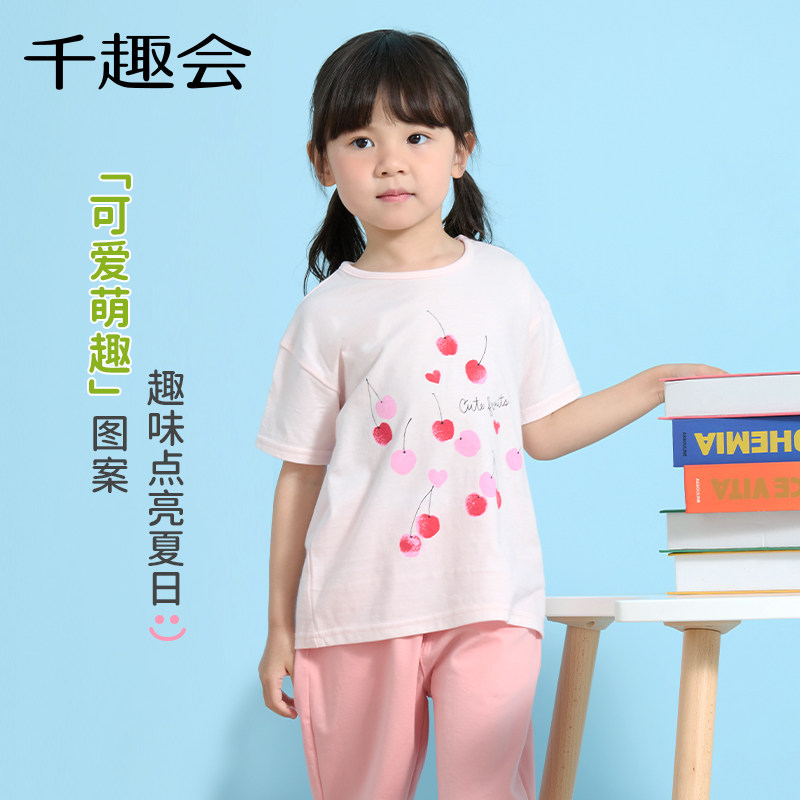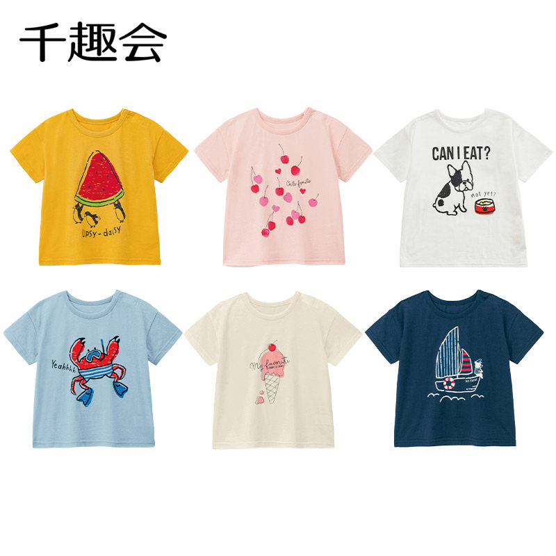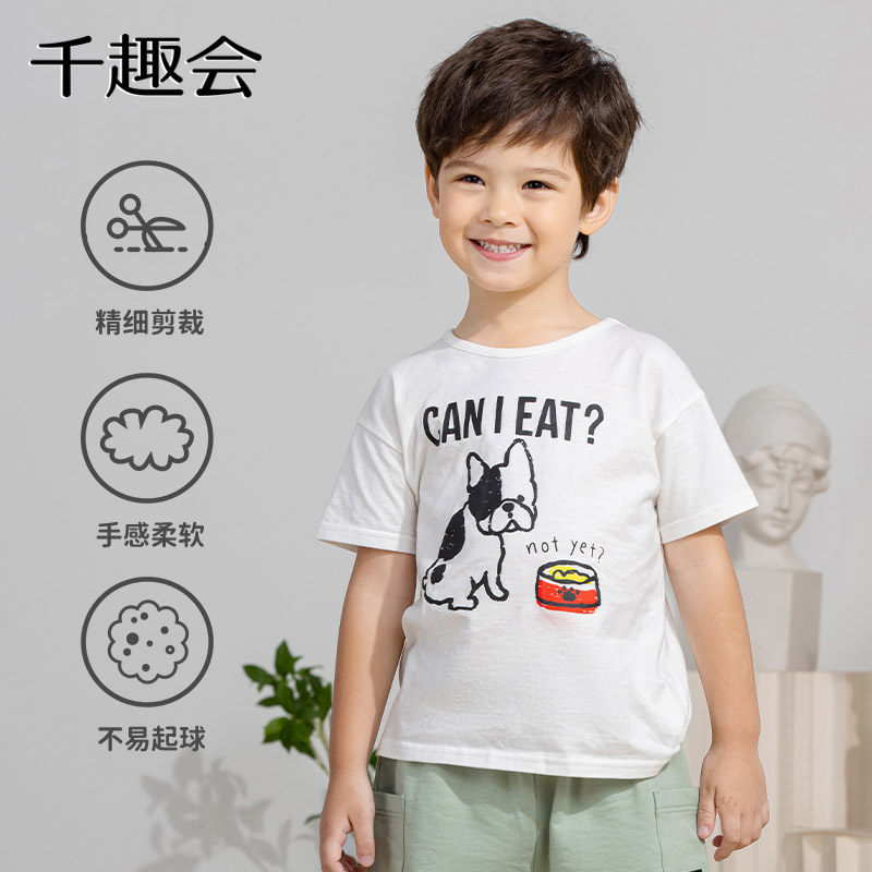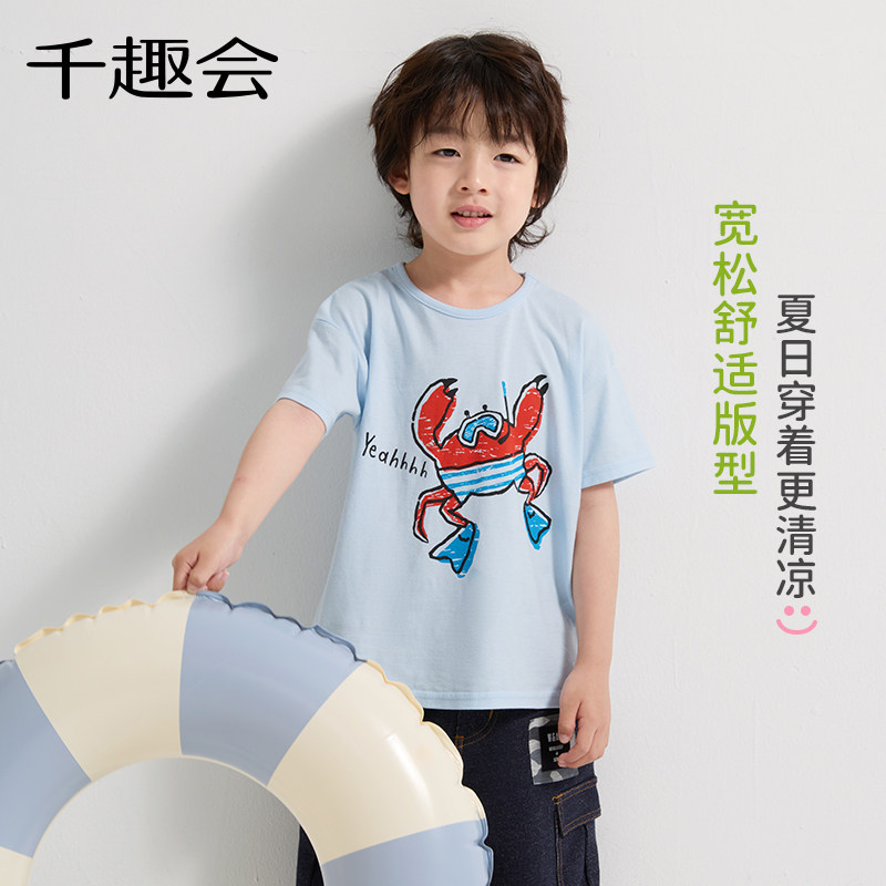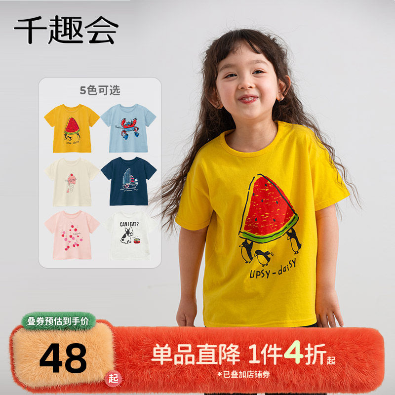 千趣会童装儿童夏季短袖T恤男童女童可爱童趣轻薄透气纯棉上衣