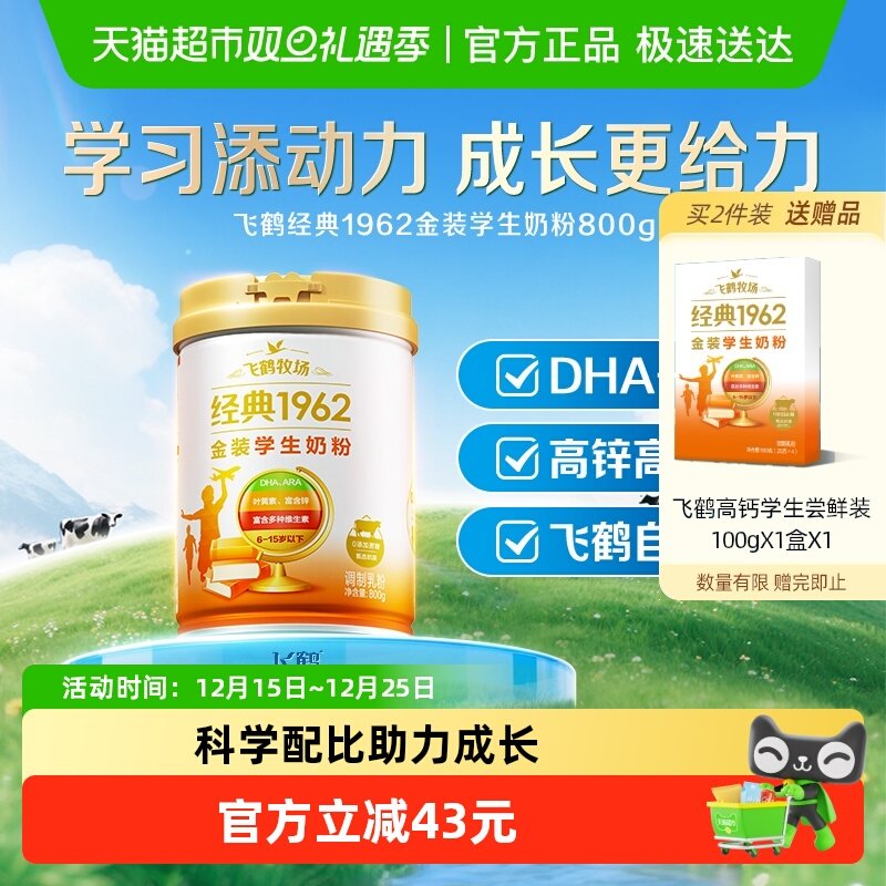 飞鹤金装1962高锌高钙青少年成长奶粉800g营养学生学习奶粉含DHA