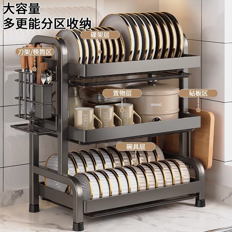 碗碟收纳架厨房置物架碗盘沥水架多功能家用放碗架碗柜碗筷收纳盒