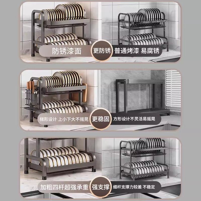 碗碟收纳架双层不锈钢厨房置物架新款碗筷碗盘子水槽上碗架沥水架