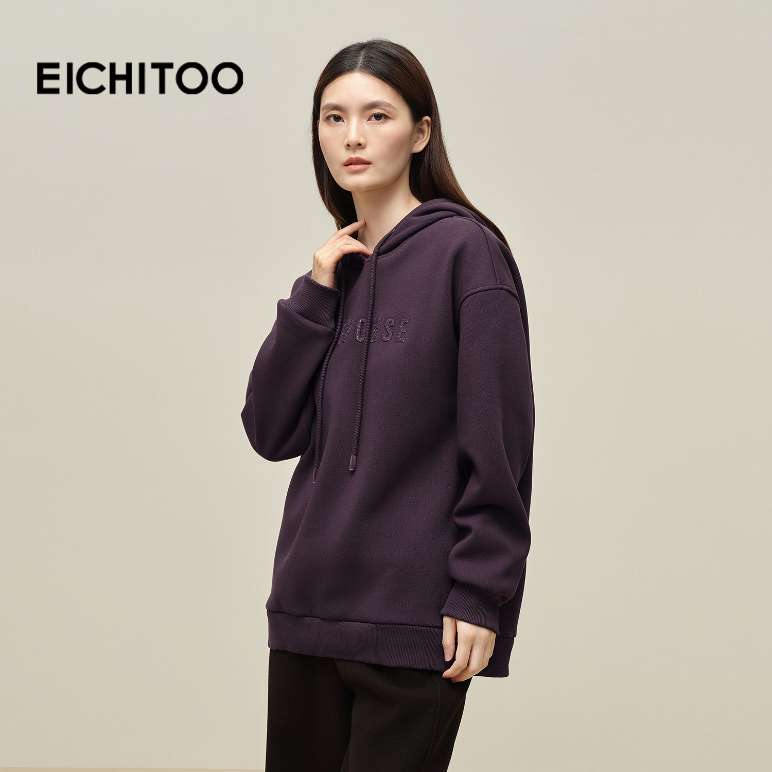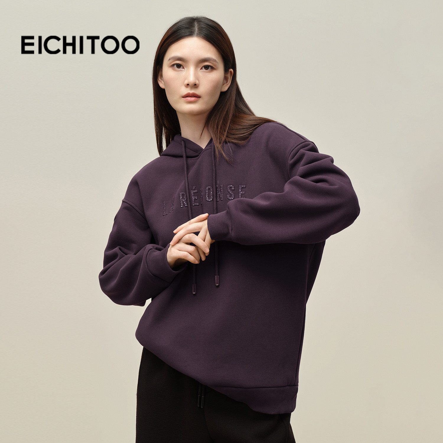 爱居兔连帽显瘦卫衣2025年冬季新款字母绣花宽松舒适上衣
