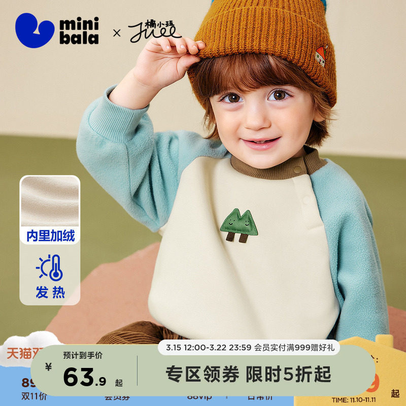 迷你巴拉男童女童宝宝卫衣春新品内里加绒远红外发热萌趣上衣