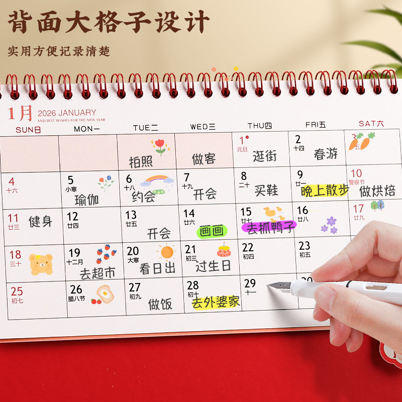 台历2026年新款日历定制logo创意简约小清新韩式办公年历个性中国风桌面摆件商务工作记事计划本订制广告月历