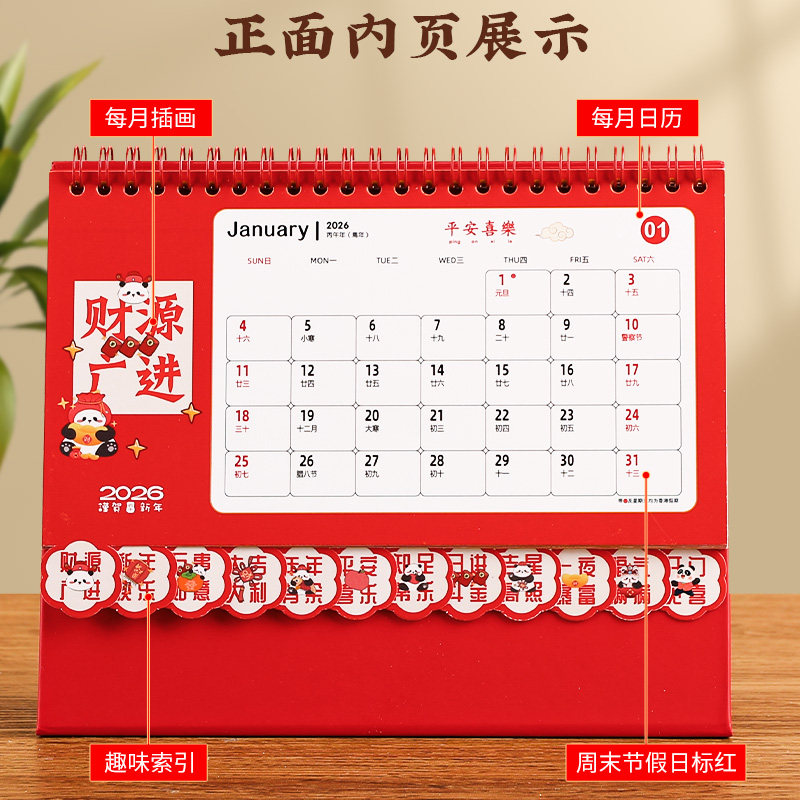 台历2026年新款创意简约桌面摆件商务办公定制广告logo月历红色卡通可爱打卡自律计划考研记事马年十三张日历