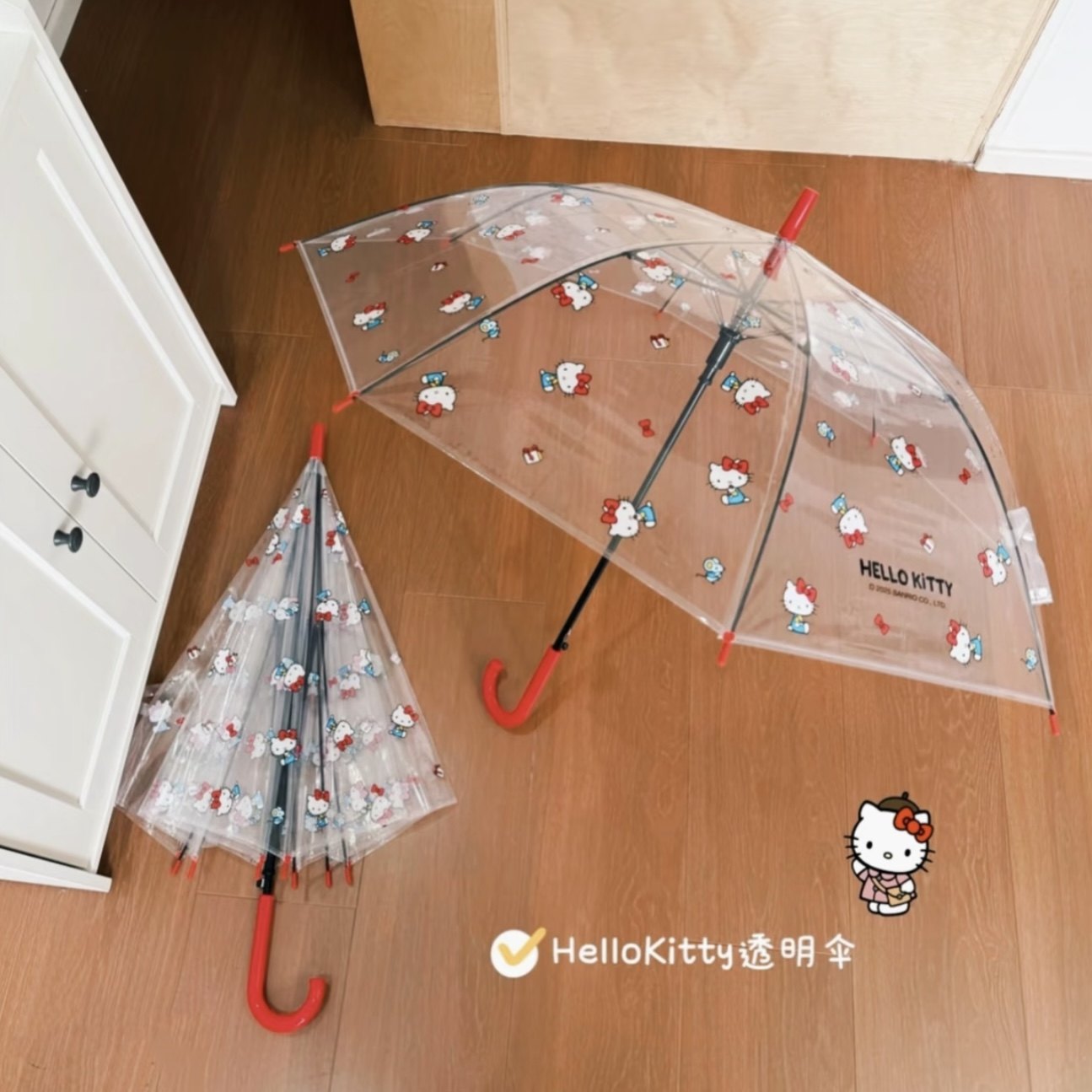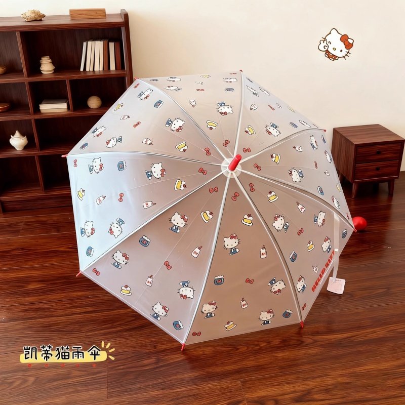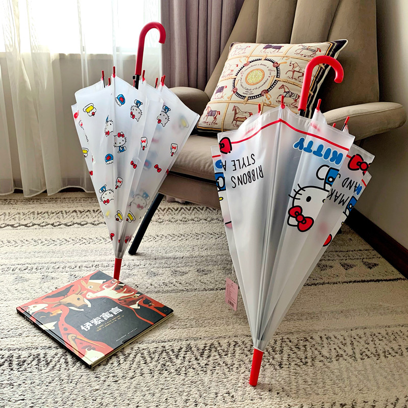 儿童透明雨伞helloKitty长柄ins全自动女可爱学生加厚凯蒂猫加固