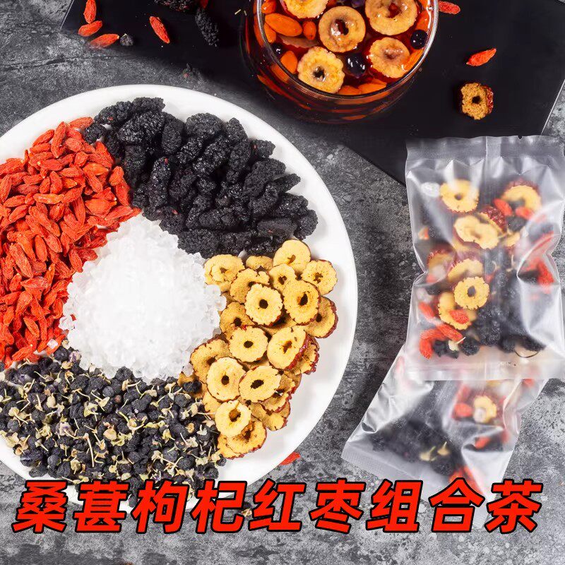 枸杞桑葚茶黑枸杞红枣干男士养生茶包女人熬夜泡水喝的东西花果茶