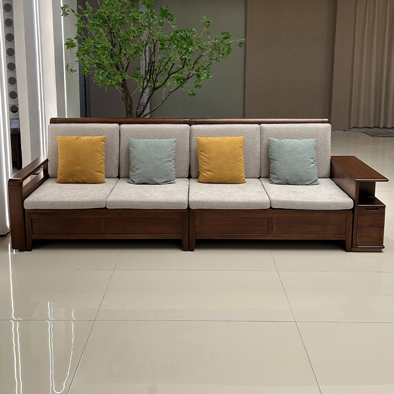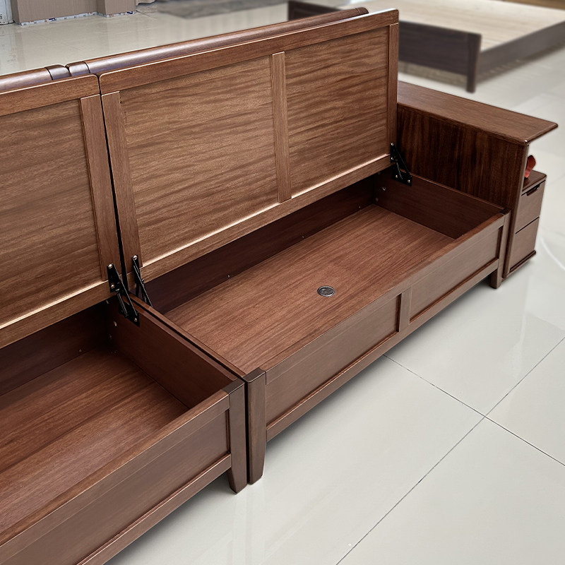 全实木沙发客厅家用现代简约储物胡桃木冬夏两用小户型直排沙发