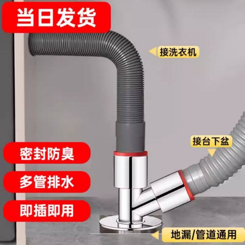 洗衣机地漏防臭洗手盆池专用下排水三头通分水流器一分二接头加长