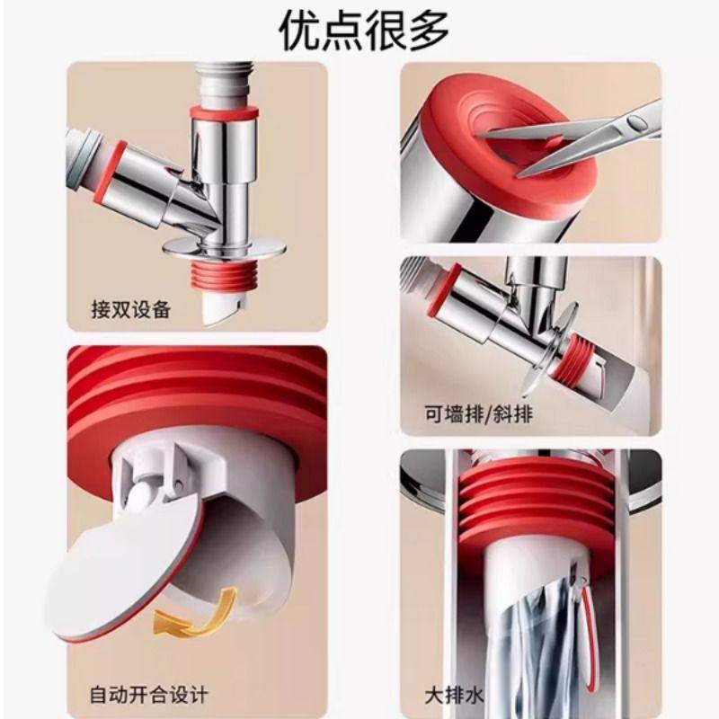 洗衣机下水止逆阀防反水下水管三头通地漏二合一排水管防溢水接头
