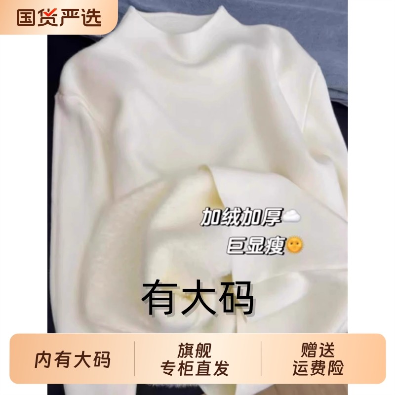 半高领加绒打底衫女2025秋冬季白色毛衣大码内搭加厚一体绒上衣冬