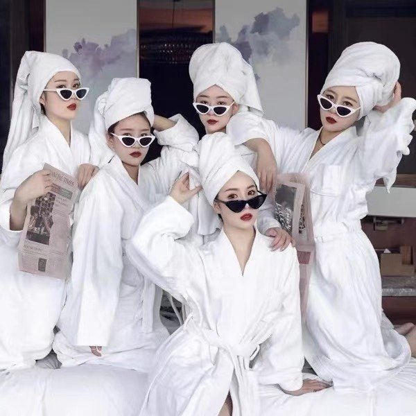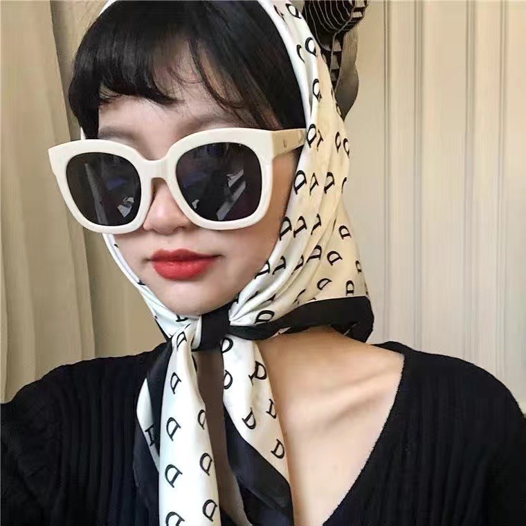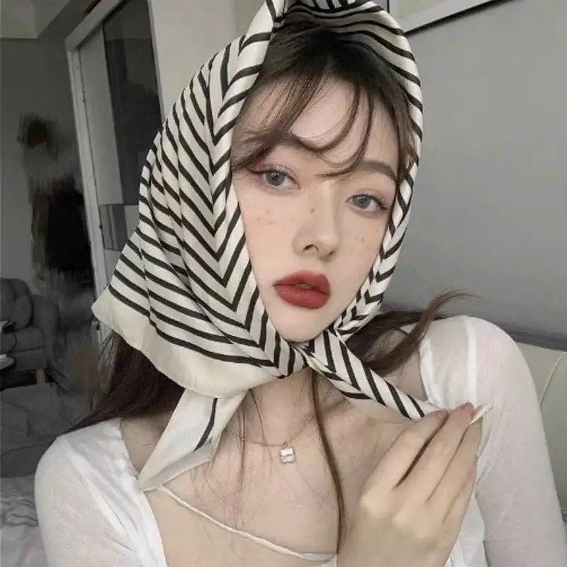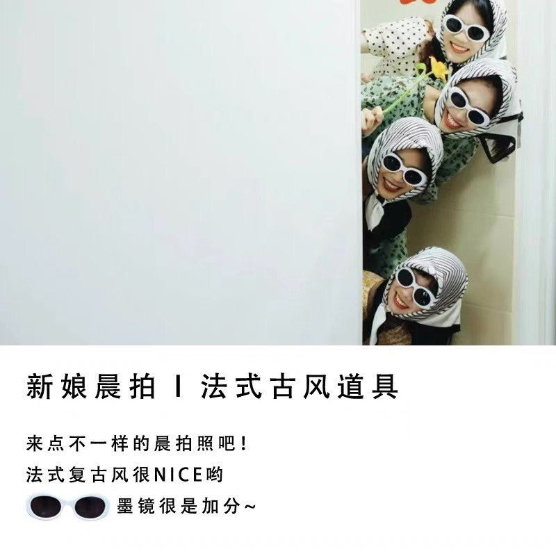 新娘晨拍闺蜜拍照道具 条纹法式复古丝巾白框墨镜ins头巾包头方巾