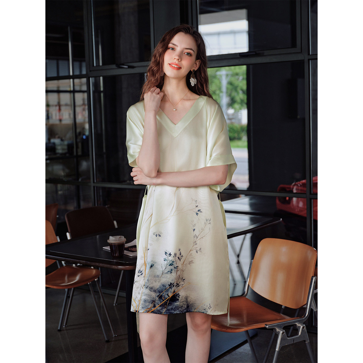美标真丝睡衣女士中袖短睡裙性感19姆米桑蚕丝家居服丝绸连衣裙