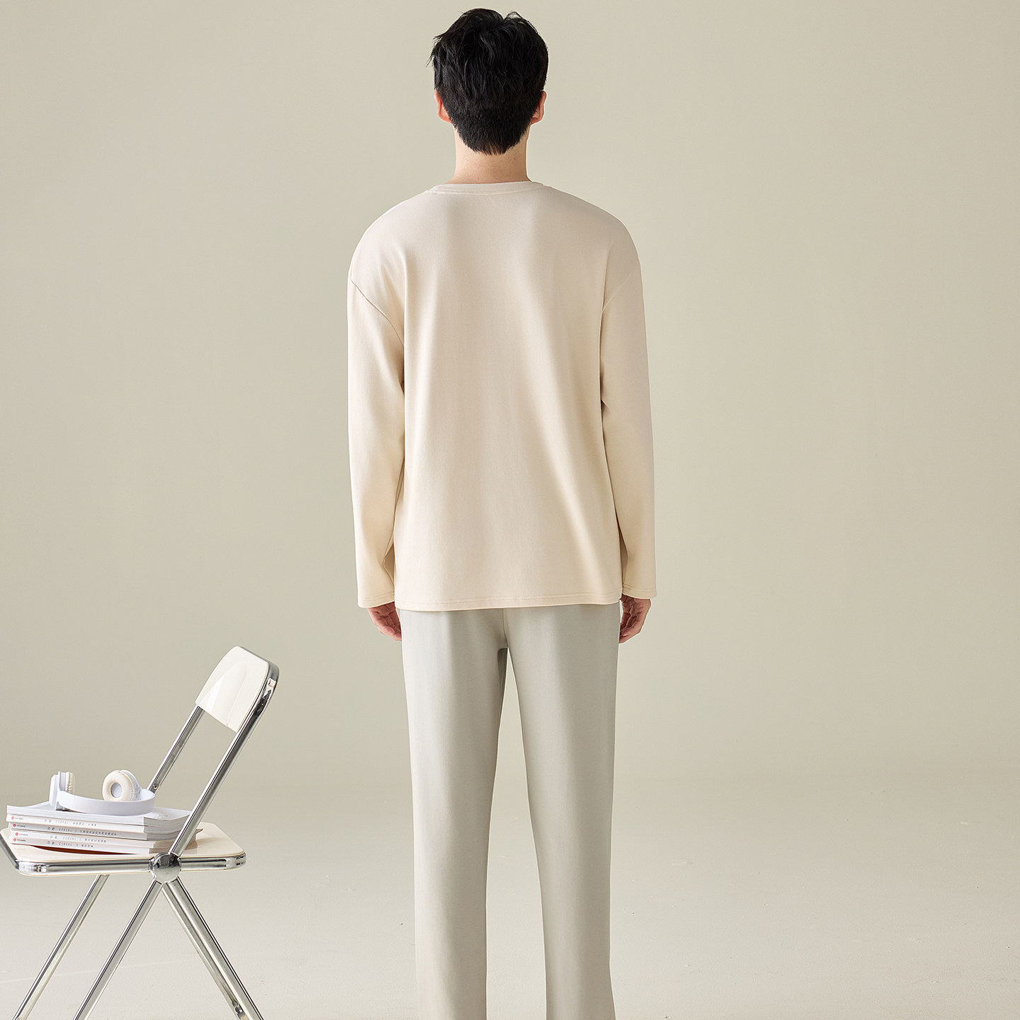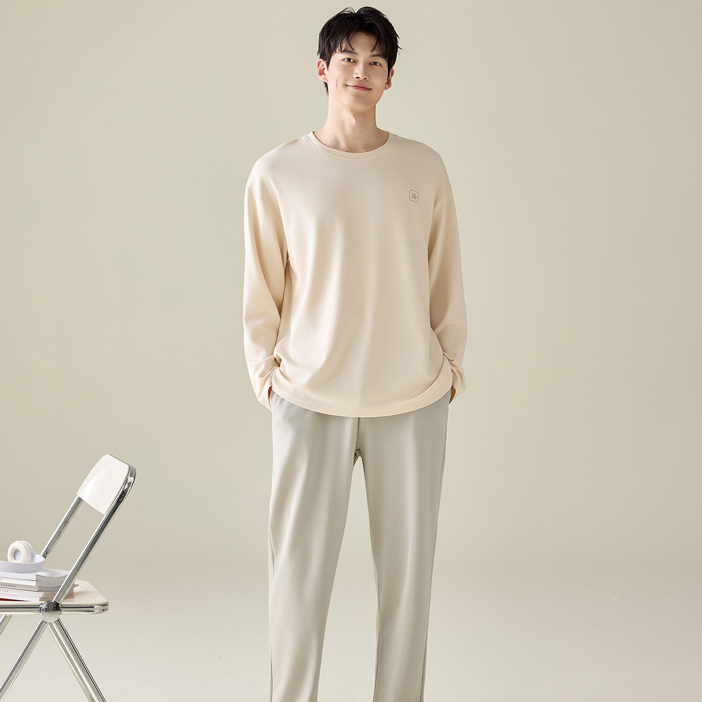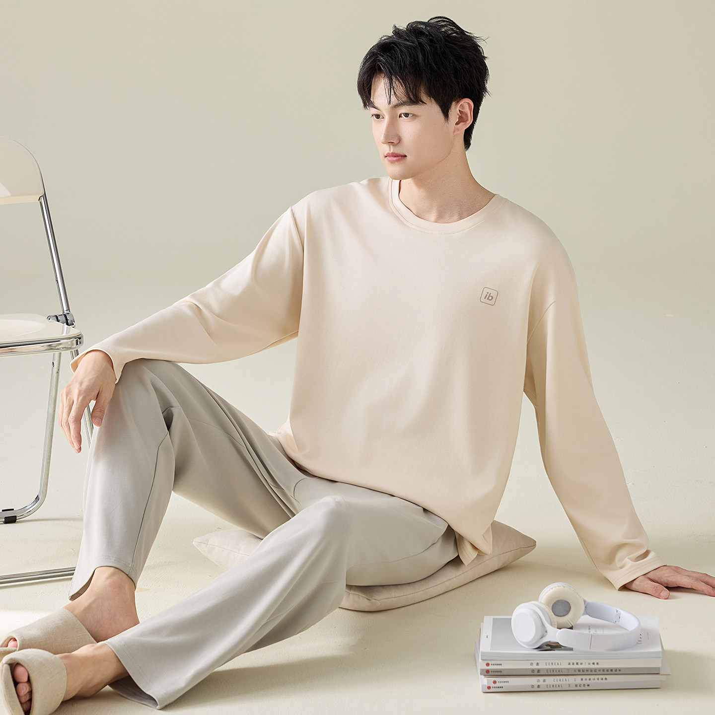 纯棉睡衣男长袖春秋款套装全棉简约高级感可外穿圆领加大码家居服