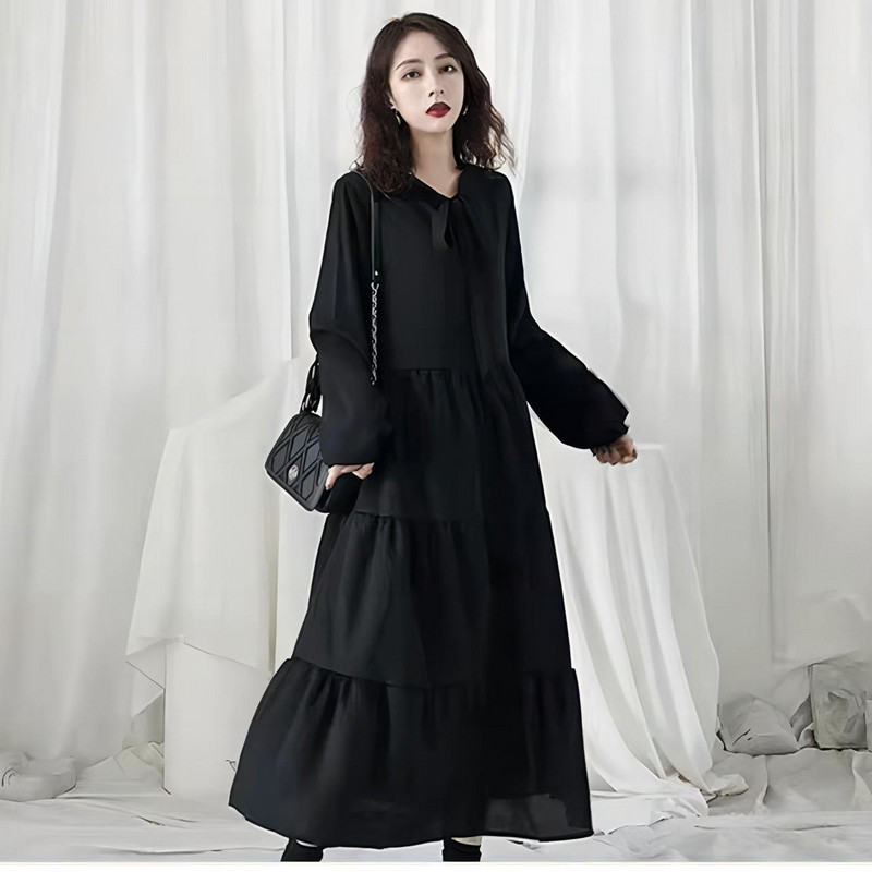 2025年新款春秋冬大摆连衣裙收腰显瘦旅游度假长裙雪纺裙沙滩裙子