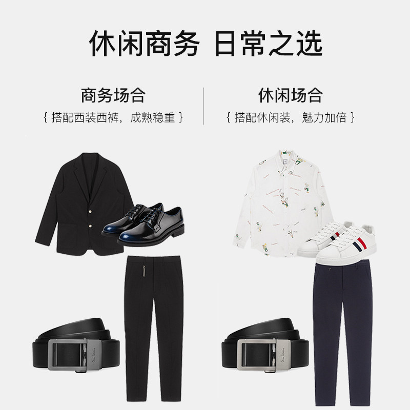 皮尔卡丹男士皮带真皮自动扣男式腰带头层牛皮商务百搭裤腰带新款