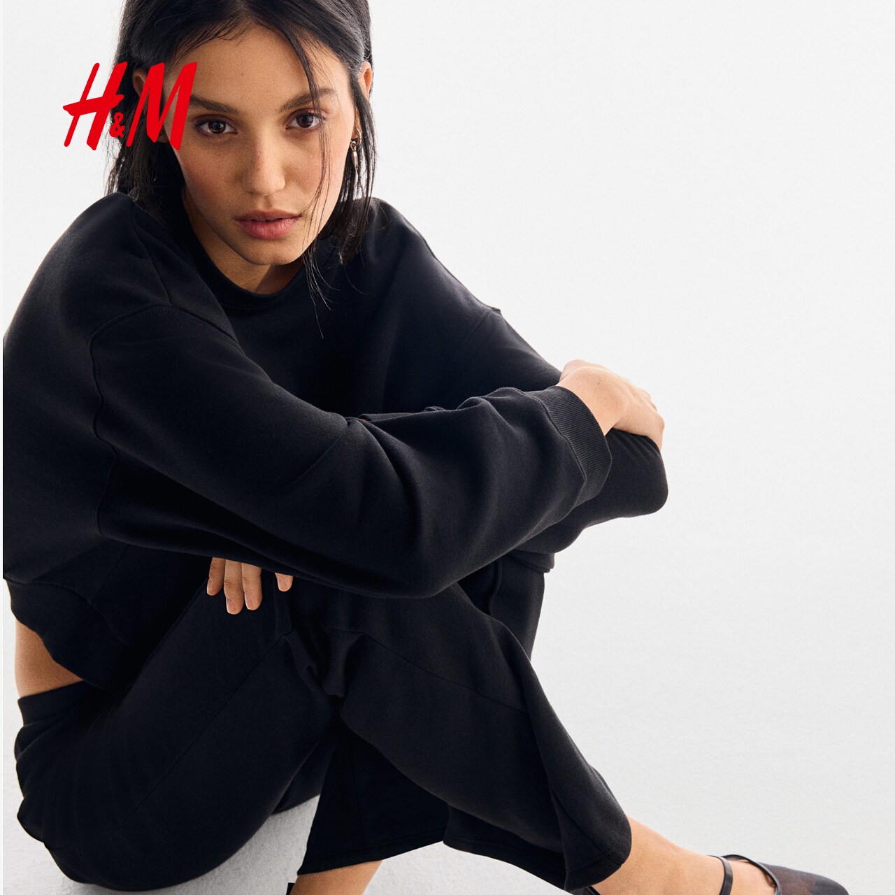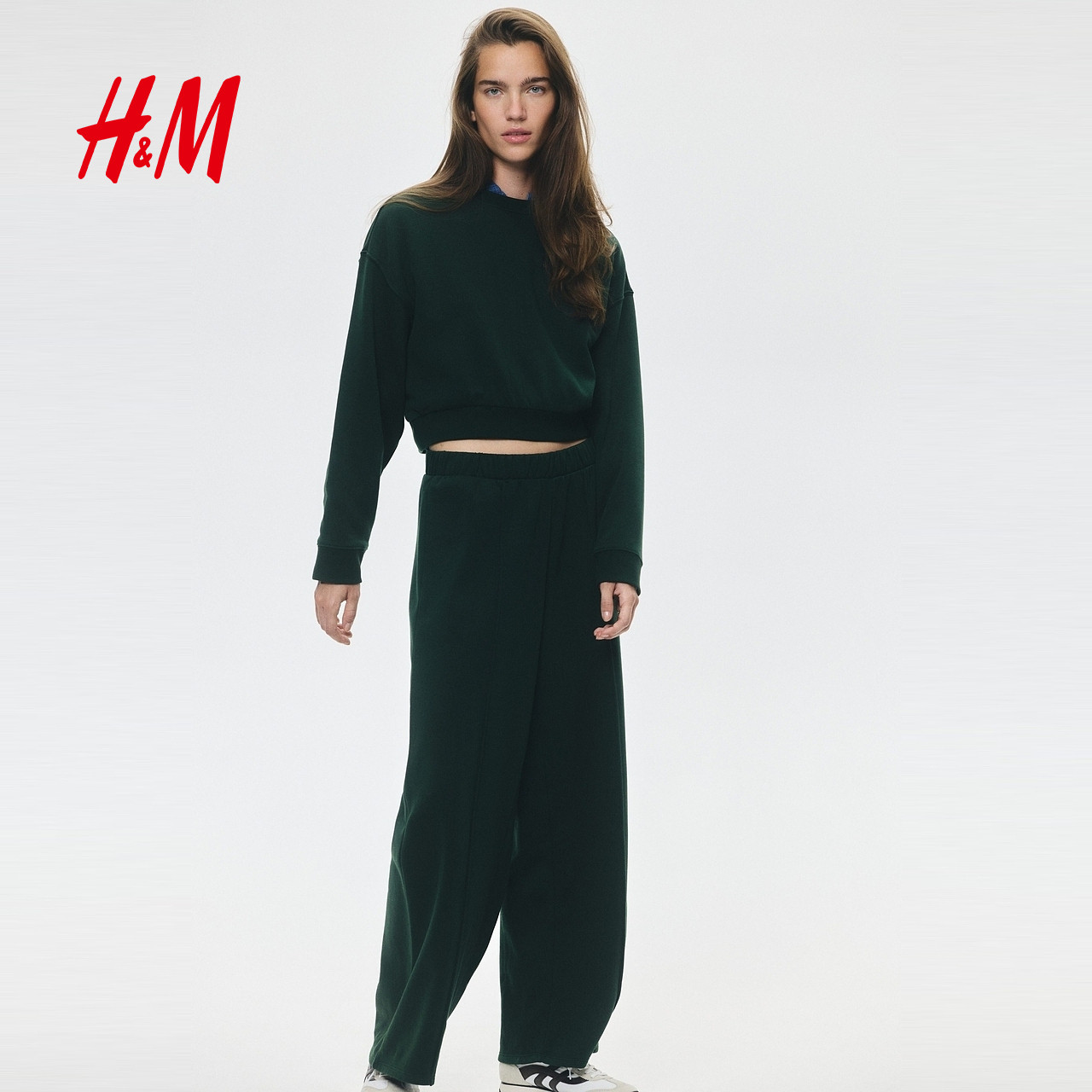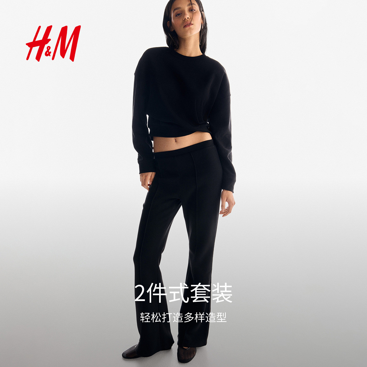 HM女装套装2件式春季加绒套头圆领卫衣运动慢跑裤1301759