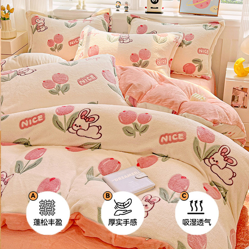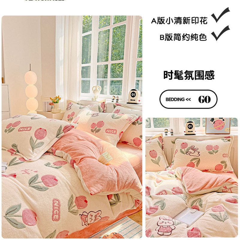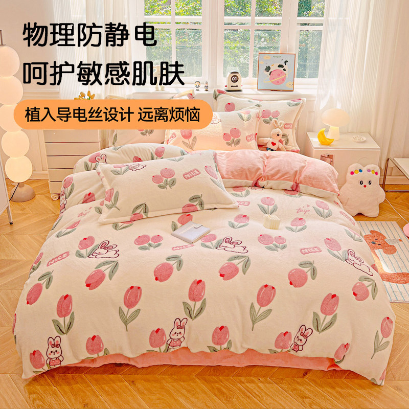 秋冬季加厚四件套牛奶绒被套床单双面加绒被罩床笠学生宿舍三件套