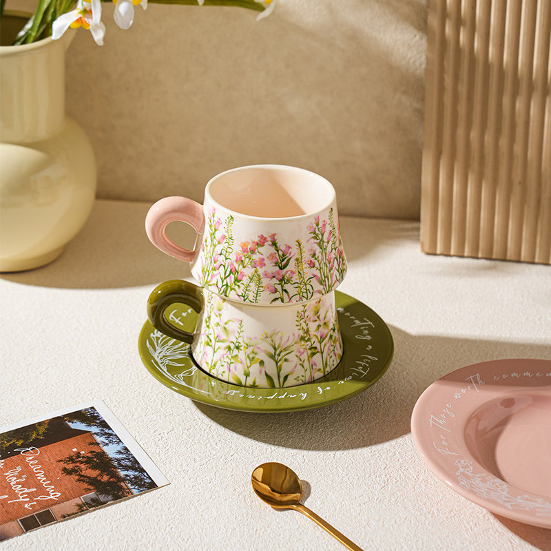 ins陶瓷杯高级感扭扭马克杯家用小众设计情侣咖啡杯女生喝水杯子