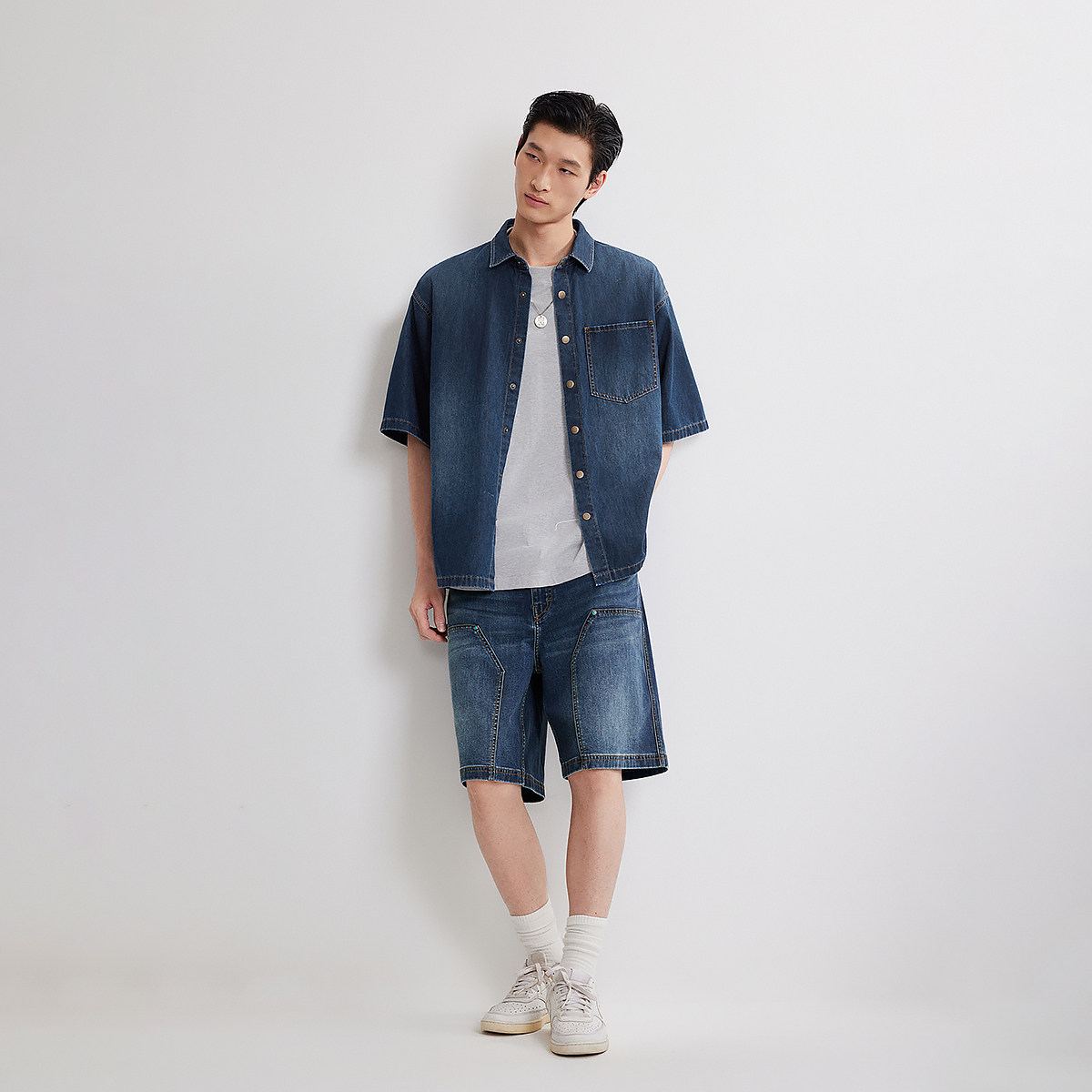 【中蓝牛仔衬衫】杰克琼斯男装26春夏新款休闲宽松透气短袖衬衣