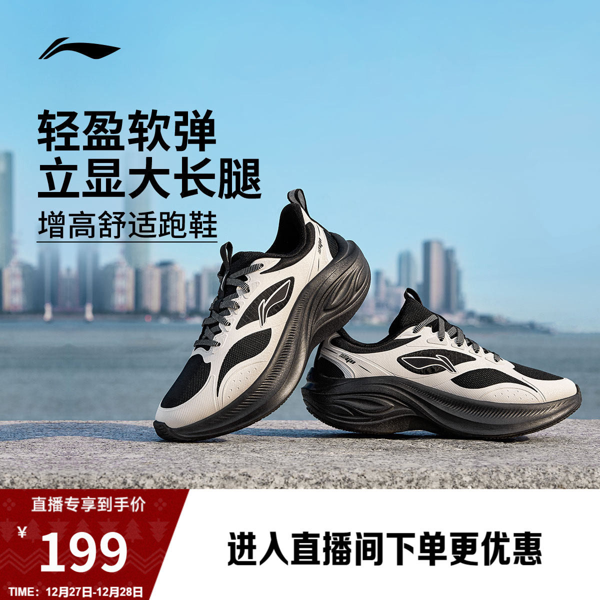 李宁凌波V2丨休闲鞋女熊猫配色软底轻便跑步鞋新款厚底增高运动鞋