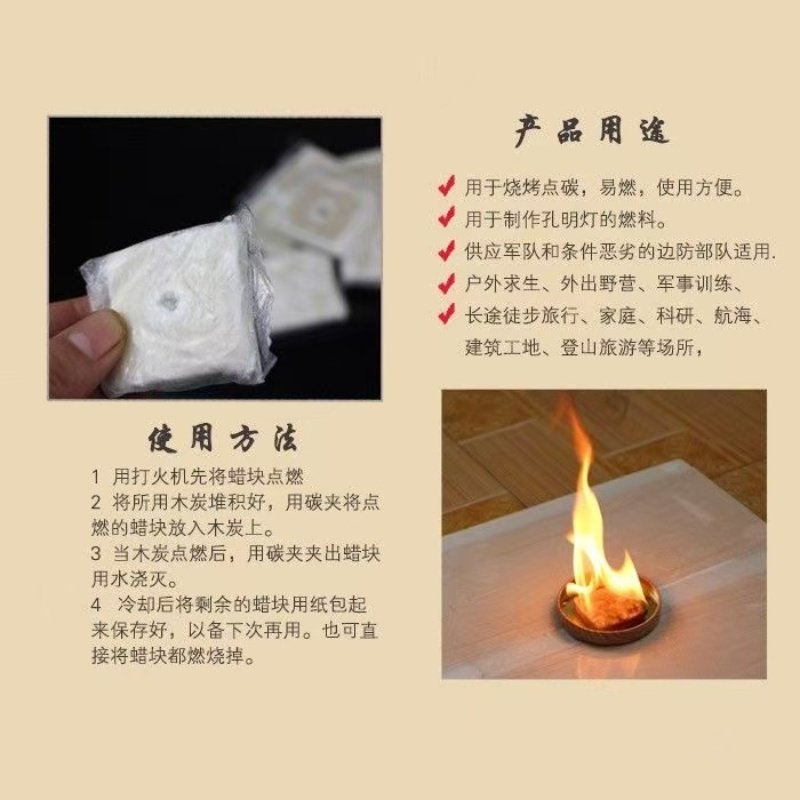 固体蜡块耐烧野炊木块野外烧烤用品点碳工具助燃剂块野外烧烤用品