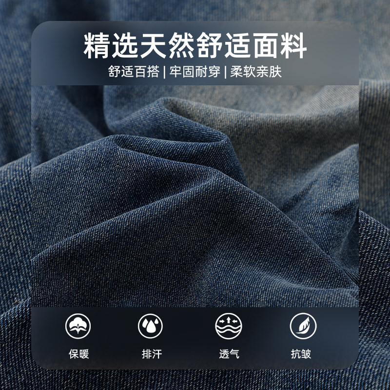 吉普专柜秋冬季新款复古牛仔裤男宽松直筒大码加绒加厚水洗长裤子