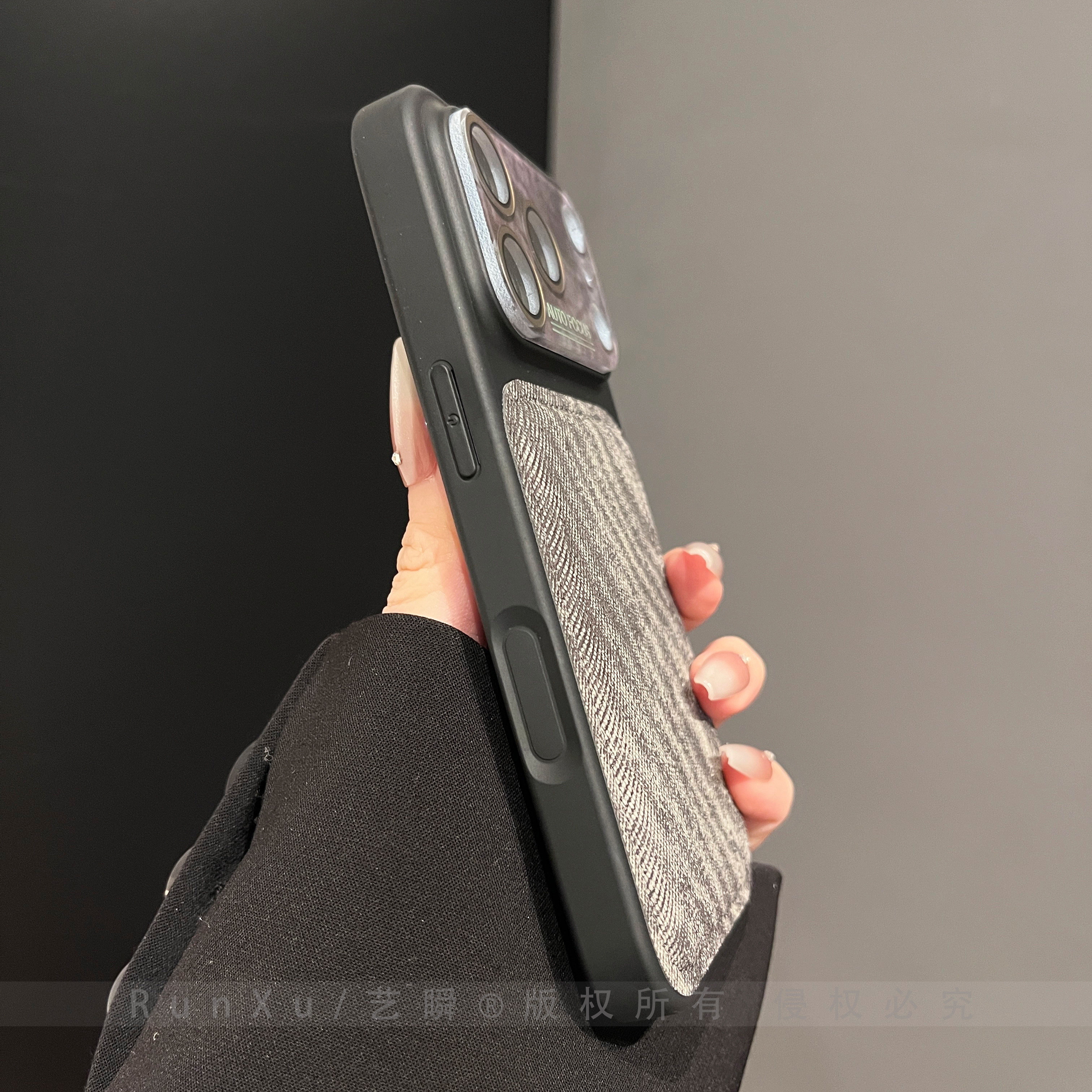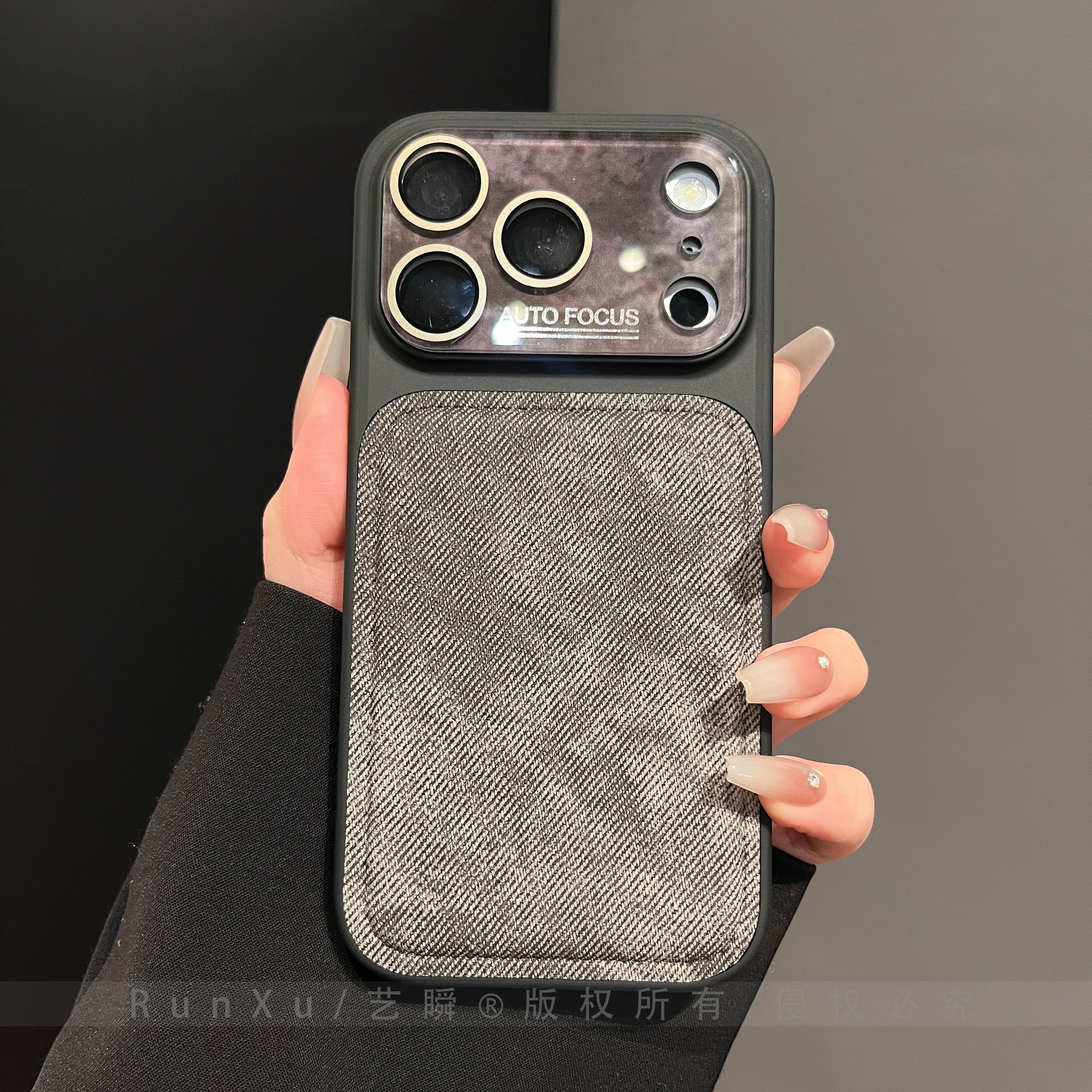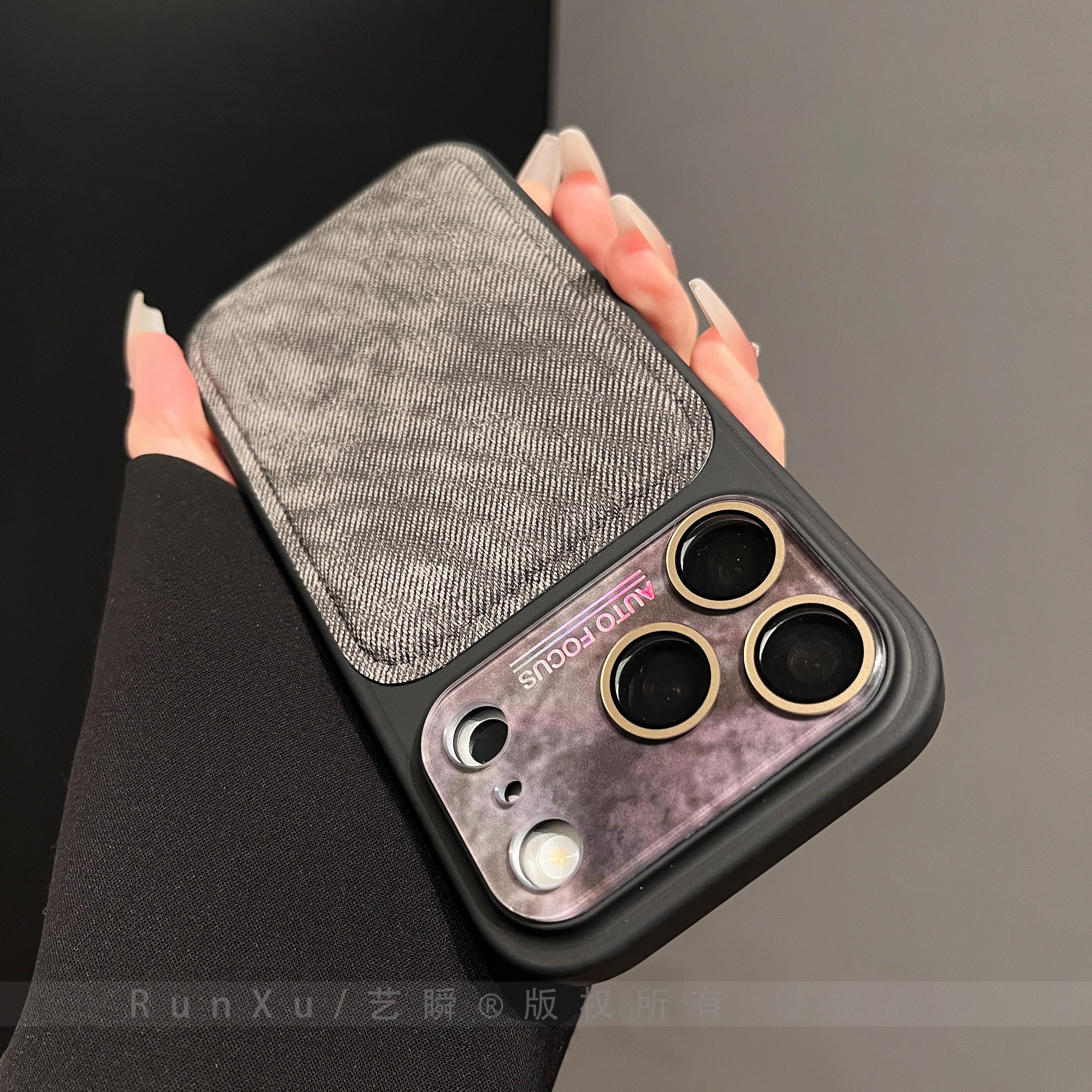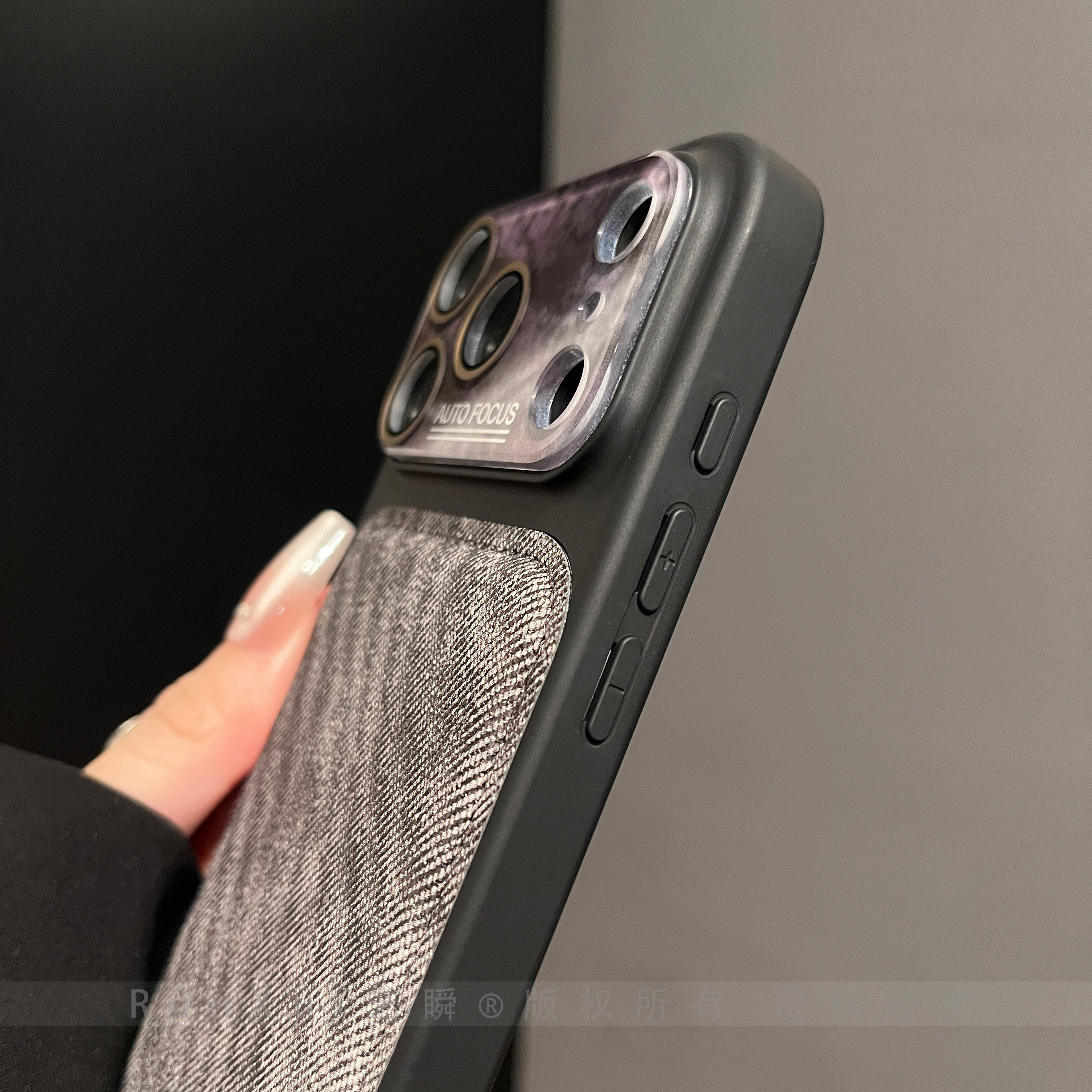 黑色鼓包牛仔布鎏金大视窗适用iPhone17ProMax手机壳新款pro苹果16自带镜头膜15高级14情侣女款17全包保护套