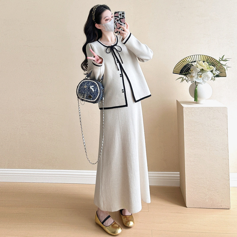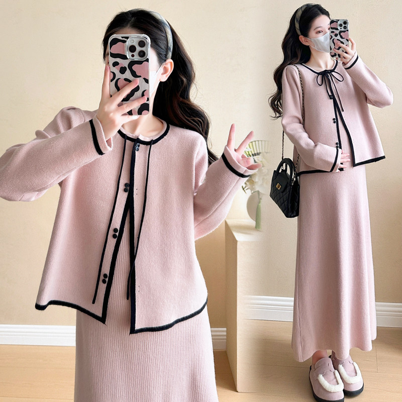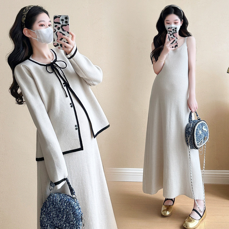 婧麒孕妇春装连衣裙两件套2025新款气质高级感宽松针织开衫吊带裙