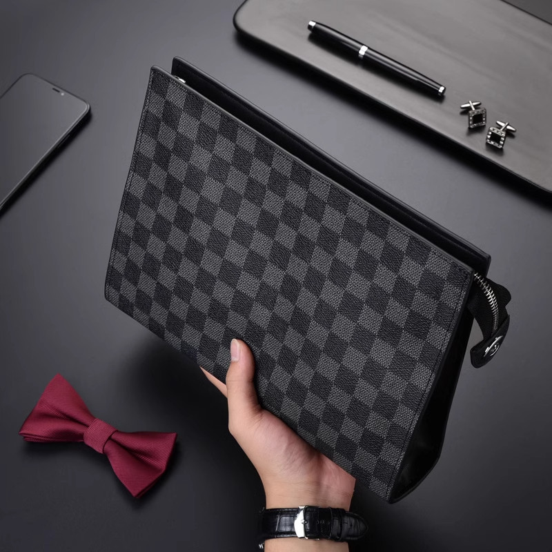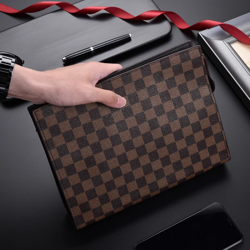 大容量手包男信封包手抓包软皮商务手拿包男款高档潮格纹办公包