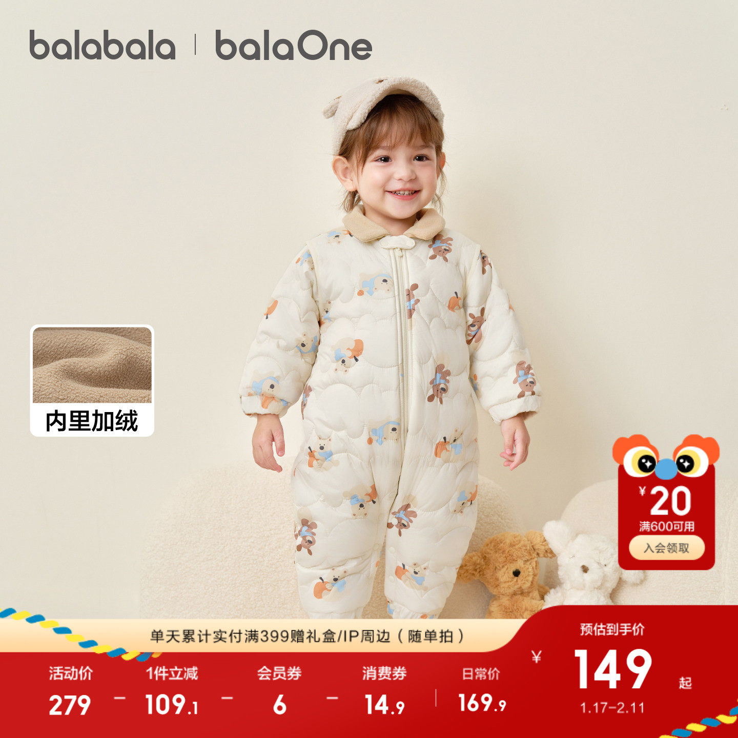 巴拉巴拉童装连体衣新生婴儿衣服宝宝冬装2025新加厚夹棉哈衣爬服