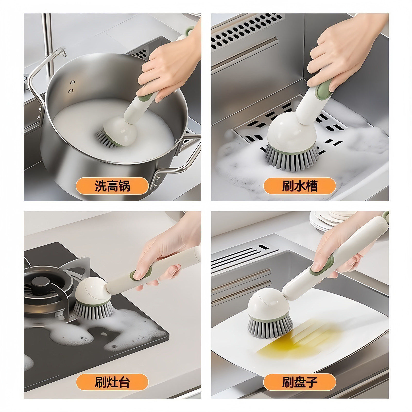 长柄旋转刷锅神器厨房专用洗锅刷子不伤锅可加液长柄清洁去污锅刷