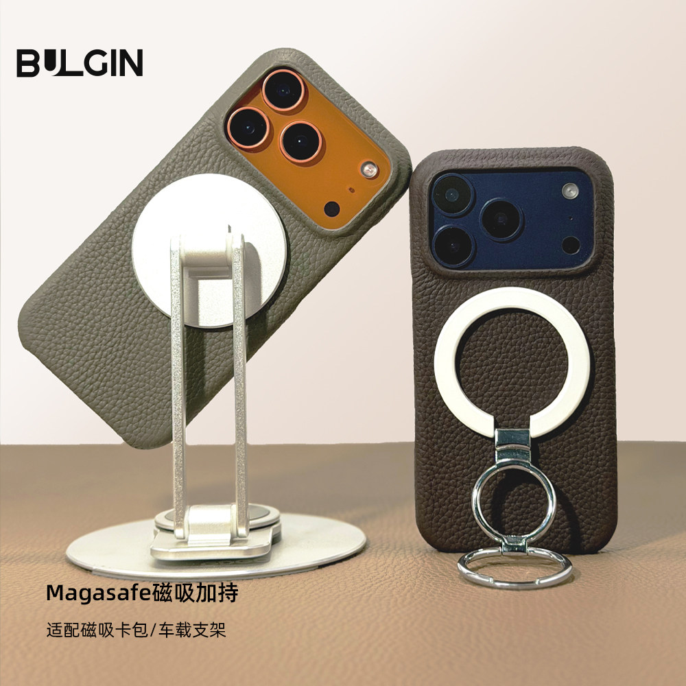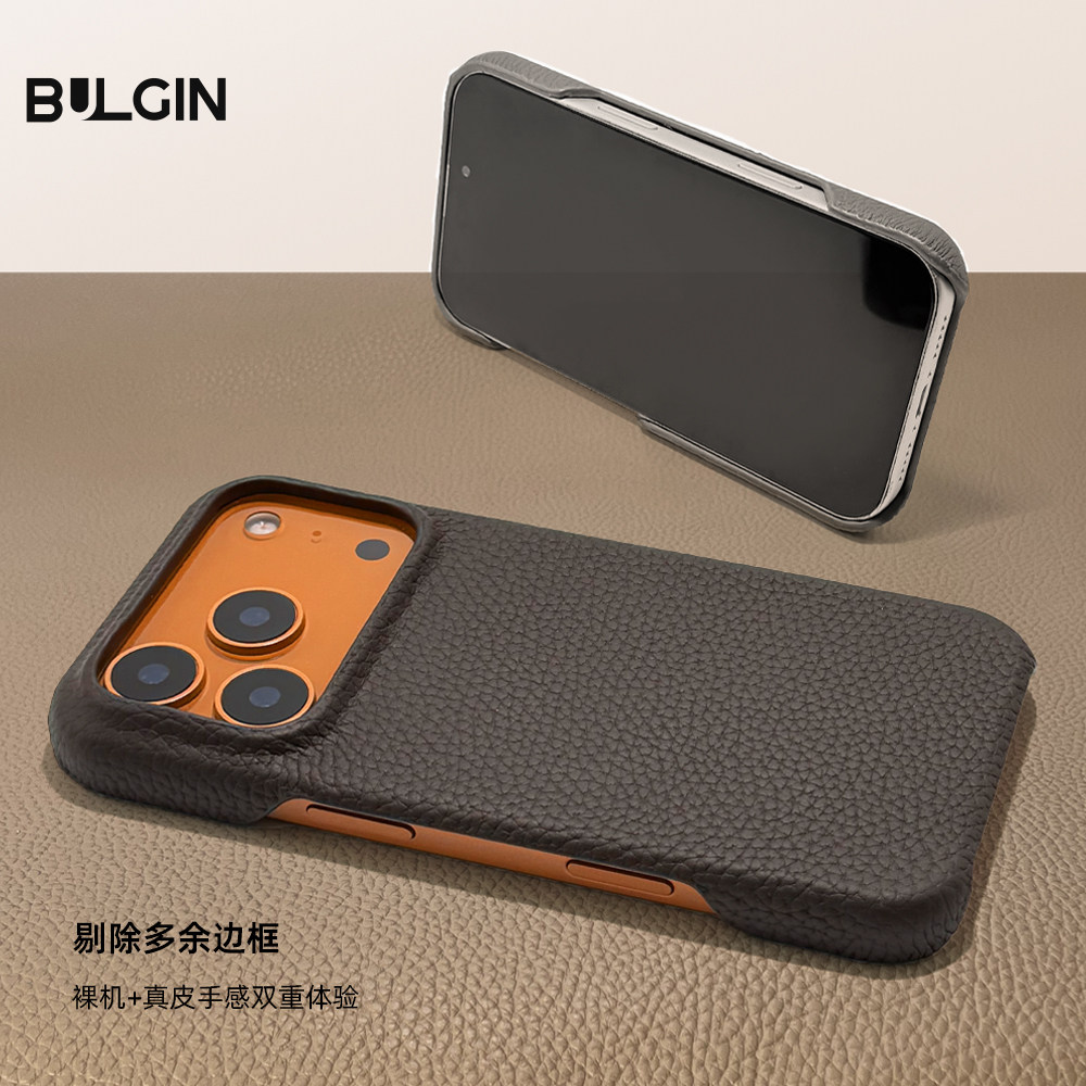 BULGIN毫境适用苹果17promax新款真皮手机壳16pm带磁吸17air皮套iphone15高端商务男士牛皮革荔枝纹半包简约